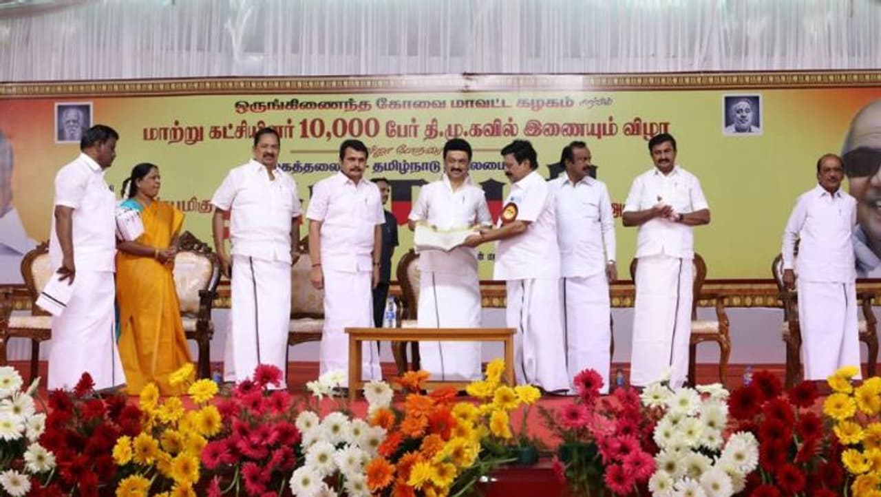 அதிமுகவிலிருந்து சமீபத்தில் திமுகவில் இணைந்த முன்னாள் எம்எல்ஏ கோவை செல்வராஜ் தலைமையில் பலர் திமுகவில் தங்களை இணைத்துக் கொண்டனர். அதிமுக, தேமுதிக, அமுமுக, மக்கள் நீதி மய்யம் உள்ளிட்ட பல்வேறு கட்சிகளை சேர்ந்தவர்கள் இந்த விழாவில் திமுகவில் தங்களை இணைத்துக் கொண்டனர்.