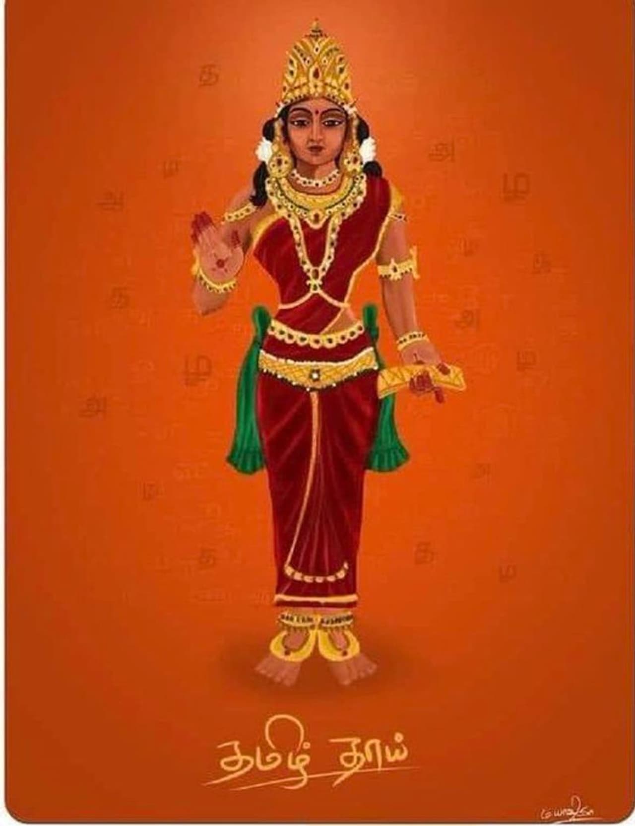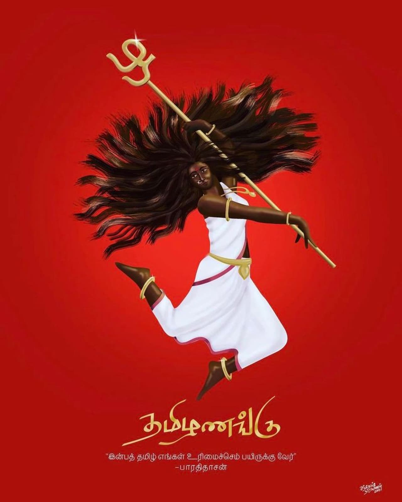 அந்தப் படத்துடன், ‘எத்திசையும் புகழ்மணக்க இருந்தபெரும் தமிழணங்கே..’ என்று தமிழின் பெருமையை போற்றும் வகையில் வரிகளை குறிப்பிட்டுருந்தார். ஏற்கனவே ஏ.ஆர். ரஹ்மான் வெளியிட்ட தமிழணங்கு தமிழ்த்தாய் ஓவியத்தை பாஜகவினர் சர்ச்சையாக்கினர். கறுப்பு நிறத்திலும் தலைவிரி கோலமாகவும் இருக்கும் படத்தை எதிர்த்து சமூக வலைத்தளங்களில் விமர்சனங்களை முன் வைத்தனர்.