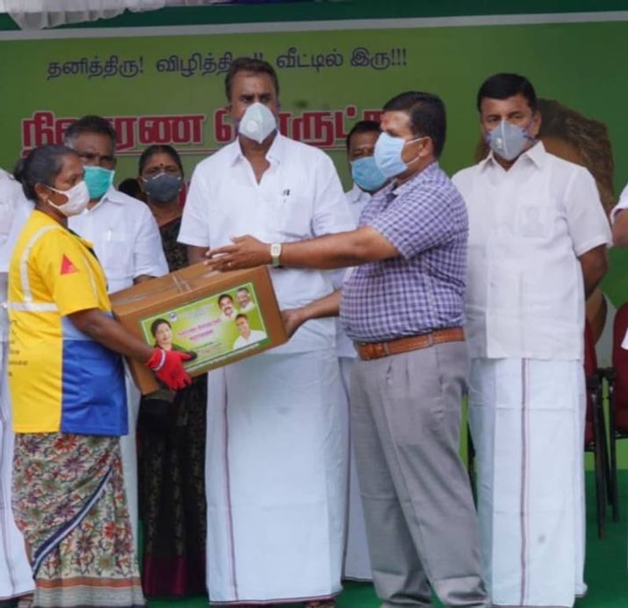 இந்தியா முழுவதும் வேகமாக பரவி வரும் கொடிய கொரோனா வைரஸ் நோய் தமிழகத்திலும் அசுர வேகம் எடுத்துள்ளது. நேற்று ஒரே நாளில் இதுவரை இல்லாத அளவில் 798 பேருக்கு தொற்று உறுதிப்படுத்தப்பட்டு தமிழகத்தில் பாதிக்கப்பட்டவர்களின் எண்ணிக்கை 8,002 ஆக அதிகரித்து உள்ளது. இதனால் தீவிர முன்னெச்சரிக்கை நடவடிக்கைகளை அரசு எடுத்து வருகிறது. கொரோனா பரவுதலை கட்டுப்படுத்தும் விதமாக தற்போது ஊரடங்கு அமலில் இருப்பதால் பொது மக்களின் இயல்பு வாழ்வு பெரிதும் பாதிக்கப்பட்டிருக்கிறது. அதை நிவர்த்தி செய்ய அரசு சார்பாக பல்வேறு நடவடிக்கைகள் எடுக்கப்பட்டு வருகின்றன. மேலும் தன்னார்வலர்களும் மக்களுக்கு உதவும் பணியில் ஈடுபட்டு வருகின்றனர். இதனிடையே ஆளும் அதிமுகவின் அமைச்சர்களும் சட்டமன்ற உறுப்பினர்களும் தங்கள் மாவட்டங்களிலும் தொகுதிக்கு உட்பட்ட பகுதிகளிலும் நிவாரணப் பணிகளில் தீவிரமாக ஈடுபட்டு வருகின்றனர்.