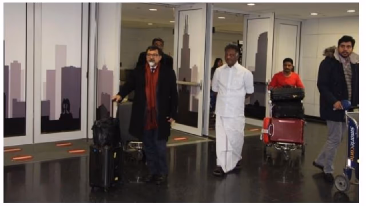 எடப்பாடி பழனிசாமி போல அமெரிக்காவில் போய் இறங்கியதும் கோர்ட் சூட்டில் ஓ.பிஎஸ் கலக்குவார் என எதிர்பார்த்தால் சிகாகோ நகரில் மைனஸ் -2 டிகிரியிலும் வேஷ்டி சட்டையில் போய் வரவேற்பை பெற்றுக் கொண்டார்.