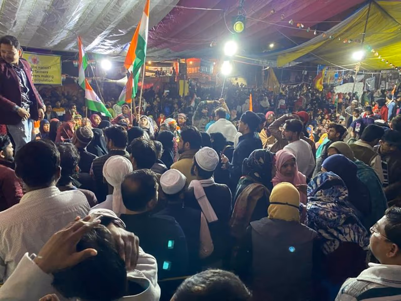 அங்கே காந்தி, நேதாஜி, அபுல் கலாம் ஆசாத், அம்பேத்கார், பகத்சிங் உள்ளிட்டோரின் படங்கள் வைக்கப்பட்டுள்ளன.மேலும் இந்து, முஸ்லிம், கிரித்தவ, சீக்கிய மத அடையாளங்கள் முன்னிறுத்தப்பட்டு நல்லிணக்கம் வலியுறுத்தப்படுகிறது. மேடையில் யாராவது முரண்பட்டு பேசினால் அவர்கள் தடுக்கப்பட்டு தவிர்க்கப்படுகிறார்கள். பல சமூக மக்களும் பங்கேற்பதால் அது ஒரு தேசிய ஒருமைப்பாட்டு களமாகவும் மாறியுள்ளது.பெண்களே தலைமையேற்று வழி நடத்துகிறார்கள். ஒரு வழக்கறிஞர் குழு அனைத்தையும் பொறுப்புணர்வோடு கண்காணித்து வருகிறது. அதில் உள்ள ஜமால் முஜாஹித் என்பவர் கூறும் போது, இப்போராட்டத்தை மக்களே தொடங்கியுள்ளார்கள். மக்களே இதை முடித்து வைப்பார்கள் என்றார்.