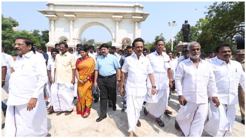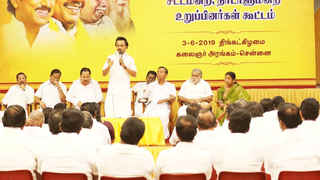 திமுகவின் மாவட்ட செயலாளர்கள், எம்.எல்.ஏ.க்கள், எம்.பி.க்கள் மற்றும் முக்கிய நிர்வாகிகள் நேற்று காலையிலேயே அண்ணா அறிவாலயத்தில் ஆஜராகினர். மிகச் சரியாக காலை 10 மணி அளவில் மு.க.ஸ்டாலின் அண்ணா அறிவாலயம் வந்து சேர்ந்தார். ஸ்டாலின் வந்த மறுநிமிடம் கூட்டம் தொடங்கியது. திமுக அமைப்புச் செயலாளர் ஆர்.எஸ்.பாரதி வழக்கம்போல் கூட்டத்தை தொகுத்து வழங்கினார்.