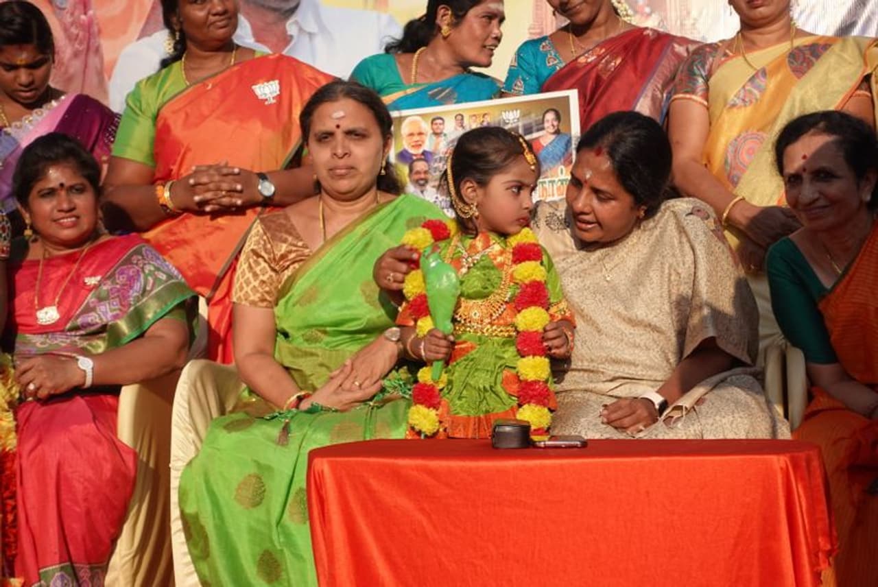 பெண்கள் தலைமையிலான முன்னேற்றம் அடிப்படையில் பெண்களை மையப்படுத்தி ஆட்சியை நடத்திவருகிறார். பெட்ரோல், டீசல், கேஸ் விலை உயர்வை கட்டுக்குள் கொண்டுவந்துள்ளோம். மோடி ஆட்சியில் பெண்கள் மகிழ்ச்சியாக உள்ளனர். ஈரோடு கிழக்கு தேர்தல் முடிவு என்பது திமுக மக்களுக்கு திட்டங்கள் செய்துள்ளதால் ஓட்டு போடுவார்கள் என்றால் எதற்காக வாக்காளர்களுக்கு பரிசுபொருட்களை வழங்கி மக்களை அடைத்துவைக்கின்றனர். மக்களை சுற்றுலா அழைத்துசெல்வது போன்ற புதிய யுக்தியை கையாண்டு வருகின்றனர்.