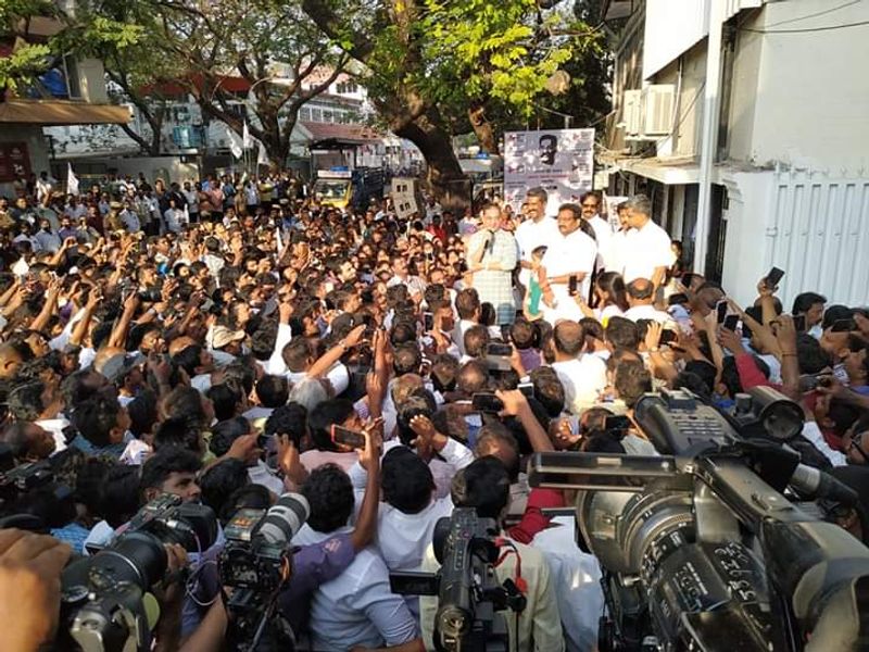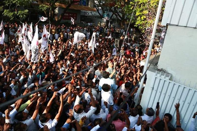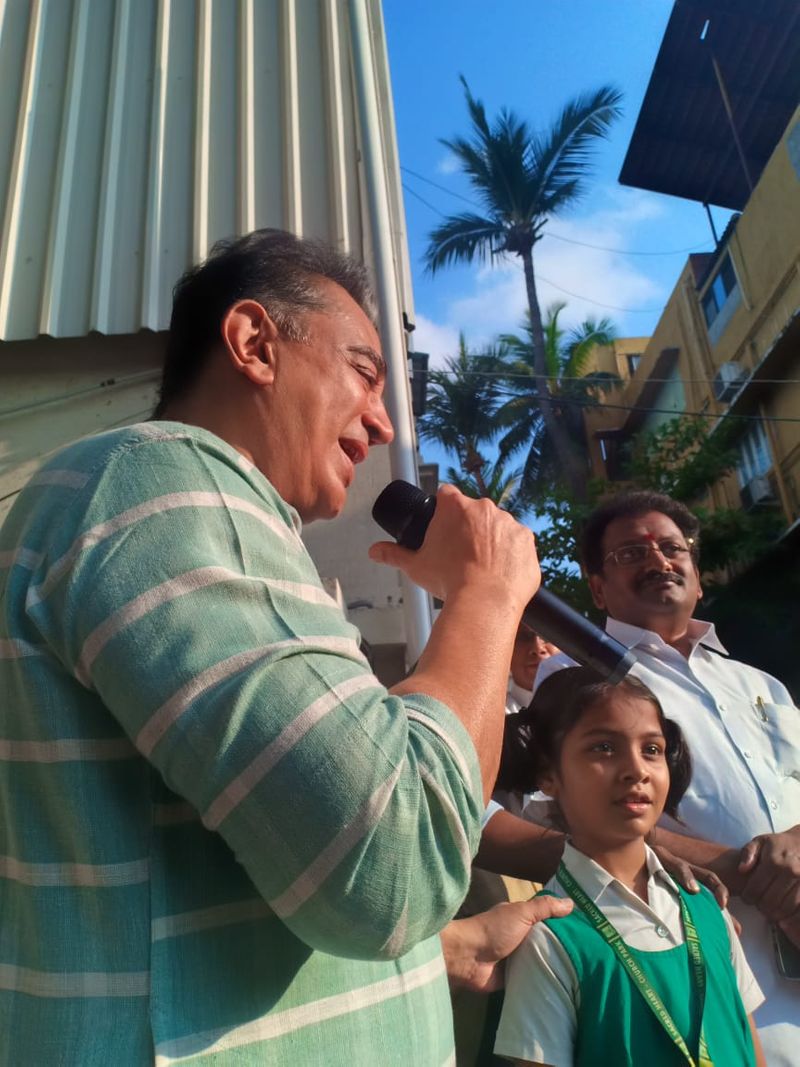 நடிகர் கமல் ஹாசன் மக்கள் நீதி மய்யம் கட்சியை தொடங்கி இன்றுடன் ஓராண்டு நிறைவு பெறுகிறது. இதையொட்டி சென்னை ஆழ்வார்பேட்டையில் உள்ள கட்சி தலைமை அலுவலகத்தில் கட்சியின் தலைவர் கமல் ஹாசன் இன்று கொடியேற்றினார். பின்னர் அங்கு திரண்டிருந்த தொண்டர்களிடையே உரையாற்றினார்.