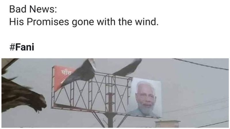 இந்நிலையில் புயலால் பாதிக்கப்பட்ட பகுதி ஒன்றில் மோடியின் பேன்னர் மட்டும் கிழியாமல் இருந்ததை வலைதளங்களில் எடுத்துப்போட்டு பி.ஜே.பி.யினர் புல்லரிப்பு அடைந்து வந்தனர். ஒவ்வொரு ஆக்ஷனுக்கும் ஒரு ரியாக்ஷன் இருக்குமல்லவா? தற்போது அதே படத்தை மீண்டும் வைரல் செய்யும் ஆண்ட்டி இண்டியன்ஸ். ‘மோடி மட்டும் தான கிழியலை. பக்கத்துல இருந்த அவரோட வாக்குறுதிகளை புயல் அடிச்சிட்டுப்போயிடுச்சே’ என்று பதிலடி கொடுத்துவருகிறார்கள்.