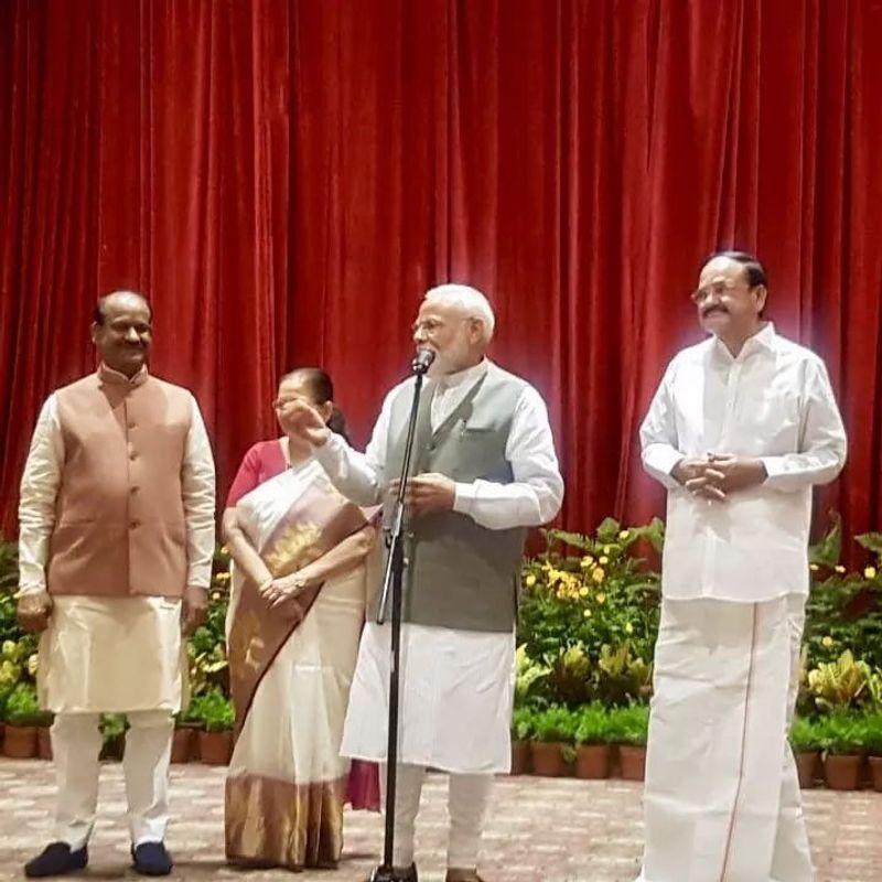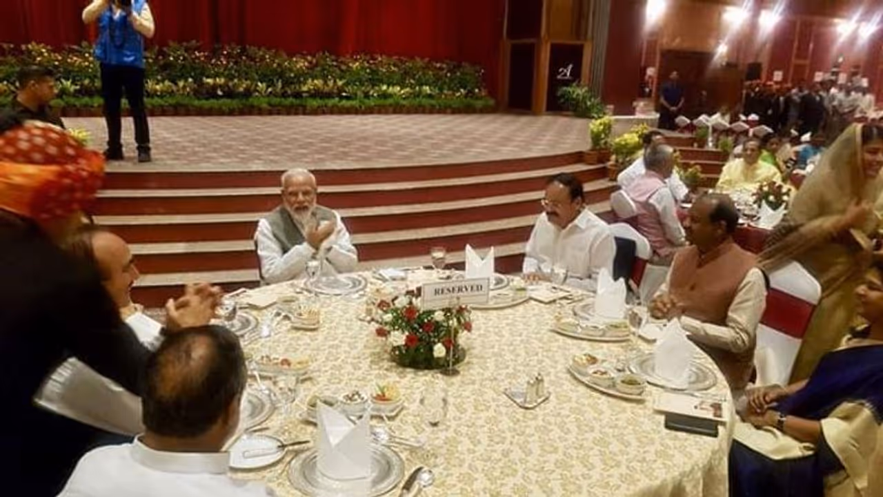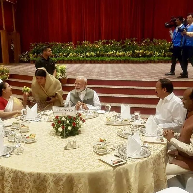 இந்த விருந்து நிகழ்ச்சிக்கு அனைத்து எம்.பி.க்களுக்கும் நாடாளுமன்ற விவகாரத் துறை அமைச்சகம் அழைப்பிதழ் அனுப்பியிருந்தது. இதையேற்று, இந்த விருந்தில் எம்.பி.க்கள் கலந்து கொண்டனர்.