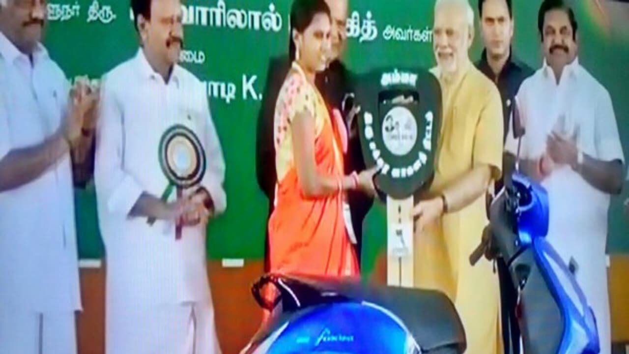 மறைந்த முன்னால் முதலசைச்சர் ஜெயலலிதா பிறந்தநாளை முன்னிட்டு அவரின் கனவு திட்டமான, பணியில் உள்ள பெண்களுக்கு இரு சக்கர வாகனம் வழங்கும் விழா நடைபெற்று வருகிறது.