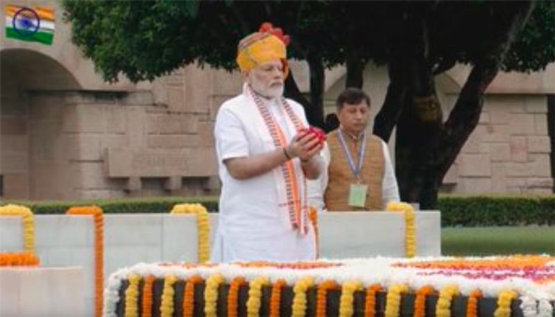 இந்நிலையில், சுதந்திர தினவிழாவை முன்னிட்டு தலைநகர் புதுடெல்லியில் உள்ள செங்கோட்டையில் முப்படைகளின் அணிவகுப்பு மரியாதையை பிரதமர் மோடி ஏற்றுக்கொண்டார். அதன்பின்னர், பிரதமர் நரேந்திர மோடி மூவர்ண தேசியக் கொடியை ஏற்றிவைத்து மரியாதை செலுத்தினார்.
