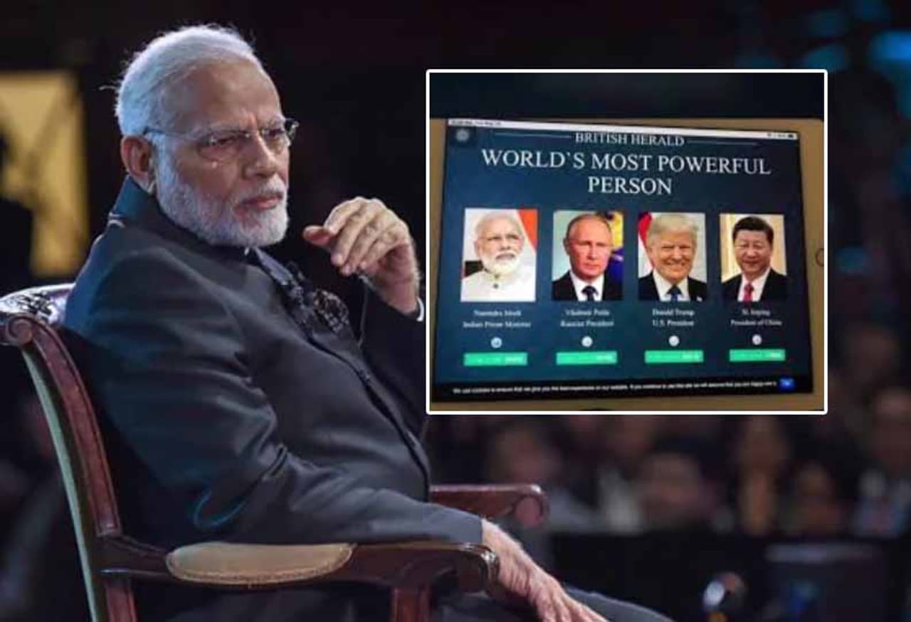 பிரிட்டிஷ் ஹெராடு என்ற இணையதளம் உலச்ம் முழுவதிலும் நடத்திய கருத்துக் கணிப்பில் வாசகர்கள் 2019 ஆம் ஆண்டில் உலகின் மிக சக்திவாய்ந்த நபராக பிரதமர் மோடியை தேர்ந்தெடுத்துள்ளனர்.