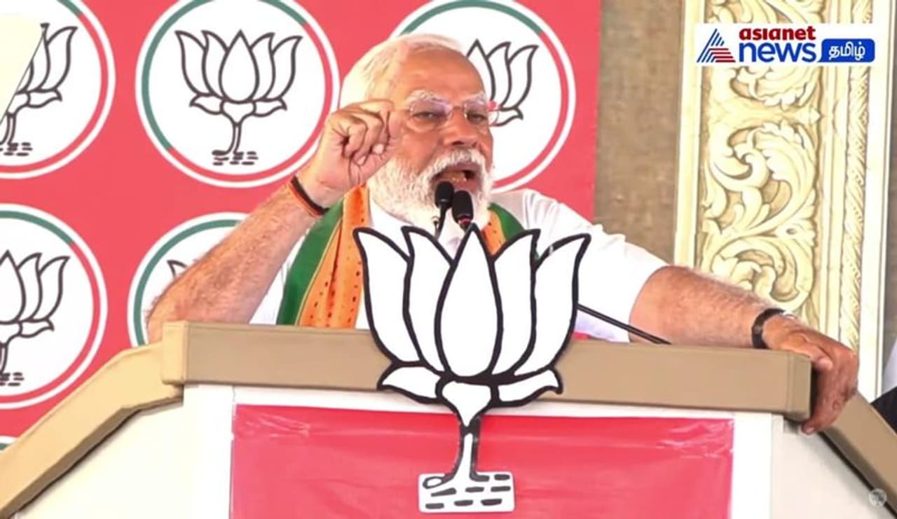 நாடாளுமன்ற தேர்தல் தேதி நாளை அறிவிக்கப்படவுள்ள நிலையில், பாஜக சார்பாக நாடு முழுவதும் பொதுக்கூட்டம் நடைபெற்று வருகிறது. இந்த பொதுக்கூட்டத்தில் பிரதமர் மோடி கலந்து கொண்டு மத்திய அரசின் திட்டங்களை பொதுமக்களிடம் எடுத்துரைத்து வருகிறார். அந்த வகையில் இன்று தமிழகத்தில் கன்னியாகுமரியில் நடைபெற்ற பொதுக்கூட்டத்தில் கலந்து கொண்டு உரையாற்றினார். அப்போது பேசிய பிரதமர் மோடி, மத்தியில் காங்கிரஸ் - திமுக கூட்டணி ஆட்சியின் போது தமிழகத்திற்கு எந்த வித திட்டங்களும் செயல்படுத்தவில்லையென விமர்சனம் செய்தார். குறிப்பாக கன்னியாகுமரி மக்கள் ரயில் திட்டங்களுக்கு கோரிக்கை விடுத்தனர் ஆனால் அதையும் நிறைவிற்றவில்லை. பாஜக அரசு வந்த பிறகு தான் திட்டப்பணிகள் தொடங்கப்பட்டதாக கூறினார்.