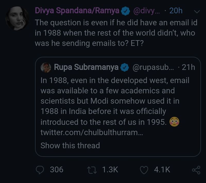 மேலும், பிரதமர் மோடி குறிப்பிட்ட காலகட்டத்தில் மின்னஞ்சலும் வெகுஜன பயன்பாட்டுக்கு வரவில்லை. இதன்மூலம், இந்த நேர்காணலின் இந்த பகுதியை குறிப்பிட்டு டிவிட்டர்வாசிகள் விமரிசனம் செய்தும் கலாய்த்தும் வருகின்றனர்.