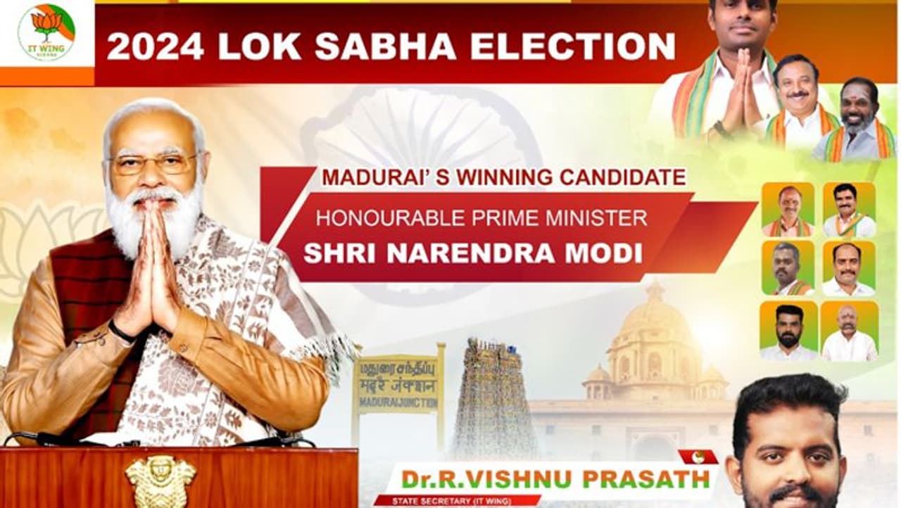 2024 ஆம் ஆண்டு நடைபெற்ற நாடாளுமன்ற தேர்தலில் மதுரை நாடாளுமன்ற தொகுதியில் பாரதிய ஜனதா கட்சி சார்பில் போட்டியிட்ட பிரதமர் நரேந்திர மோடி வெற்றி என மதுரை மாநகர் முழுவதும் பல்வேறு பகுதிகளில் பாஜக சார்பில் போஸ்டர்கள் ஒட்டப்பட்டுள்ளது அனைவரது கவனத்தையும் ஈர்த்துள்ளது.