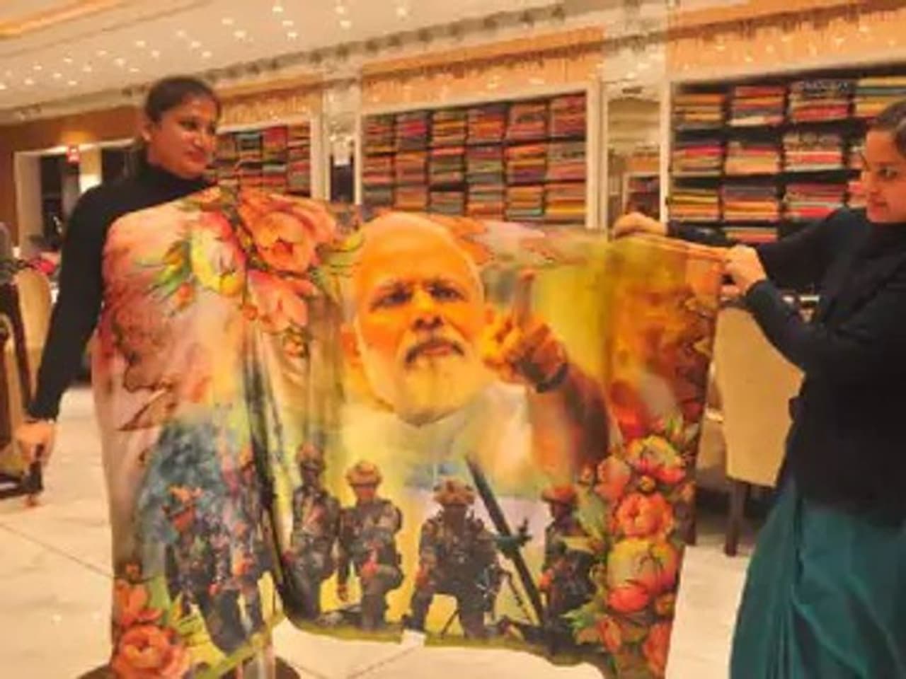 உ.பி, லக்னோ, கான்பூர், கோரக்பூர் மற்றும் வாரணாசி ஆகிய நான்கு நகரங்களில் இருந்து இதுவரை சுமார் 50 ஆயிரம் புடவைகளுக்கு ஆர்டர் செய்யப்பட்டுள்ளது. சூரத்தில் வணிகம் செய்யும் கோரக்பூர் மற்றும் கான்பூரைச் சேர்ந்த இரண்டு வர்த்தகர்கள் உ.பியில் 40 மாவட்டங்களில் வணிகம் செய்யும் தங்கள் வியாபாரிகளின் மூலம் ஒரு லட்சம் புடவைகளை எந்த அனுப்ப உள்ளதாக தெரிவித்துள்ளனர். இந்தப் புடவைகள் அனைத்தும் சூரத்தில் தயாரிக்கப்படுகின்றன, நாட்டிலேயே மலிவான விலையில் புடவைகள் அங்கு தயாரிக்கப்படுவதே அதற்கு காரணம். மேலும் ஓரிரு நாட்களில் மேலும்1 லட்சம் புடவைகளுக்கான ஆர்டர்கள் வரப் போவதாக கூறப்படுகிறது. மீரட்டில் உள்ள புடவை ஷோரூமுக்கு சூரத்தில் இருந்து மோடியின் புகைப்படத்துடன் கூடிய புடவை மாதிரிகள் வந்துள்ளன. அதில் மோடி அரசின் முக்கிய சாதனைகள் விளக்கும் வகையிலான பல்வேறு புகைப்படங்கள் இடம்பெற்றுள்ளன.
