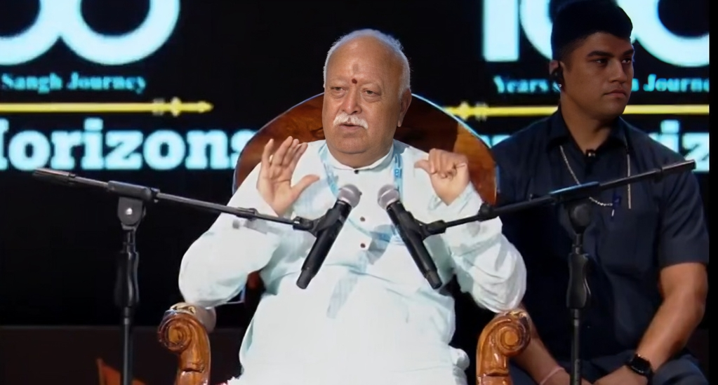 குவஹாத்தியில் ஒரு நிகழ்ச்சியில் உரையாற்றிய மோகன் பகவத், ‘‘இந்து மதம் ஒரு மத அடையாளமாக மட்டுமல்ல, அது ஒரு நாகரிக அடையாளம். இந்தியாவும் இந்து மதமும் ஒன்றுதான். இந்தியா இயற்கையாகவே இந்து தேசம். குணநலன்களை உருவாக்குவதும், ஒற்றுமையாக்குவதுமே ஆர்.எஸ்.எஸ்ஸின் இலக்கு.