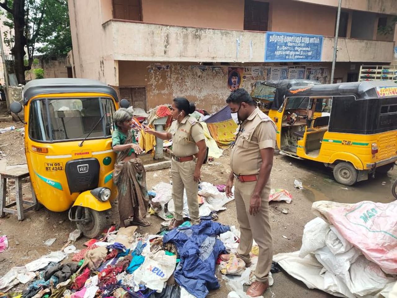 இவர்கள் அப்பகுதியில் உள்ள பிளாஸ்டிக் குப்பைகளை பொறுக்கி அதை வைத்து வாழ்வாதாரத்தை நடத்தி வருகின்றனர். இதில் பிரபாவதி கடந்த ஒரு மாதத்திற்கு முன்பு உடல் அழுகிய நிலையில் அங்குள்ள நடைபாதையில் இறந்து கிடந்தார். தகவலறிந்த தலைமைச் செயலக காலனி இன்ஸ்பெக்டர் ராஜேஸ்வரி அவரது உடலை மீட்டு போலீசார் உதவியுடன் அடக்கம் செய்தார். இந்நிலையில் அவருடைய சகோதரிகள் கடந்த சில நாட்களாக சாலையோரம் தங்கி வந்தனர். அவர்களிடம் விசாரித்த தலைமை செயலக காலனி போலீசார் வீட்டிற்கு செல்லுமாறு அறிவுறுத்தினர். வீடு இருந்தும் வீட்டில் தங்க இடம் இல்லை என்று மூதாட்டிகள் கூறியதை கேட்டு போலீசார் அங்கு சென்று பார்த்தனர்.