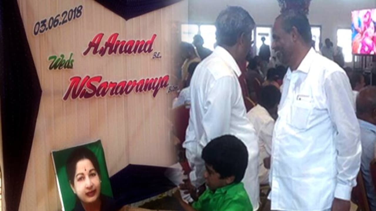மேலும், மண்டபத்தின் நுழைவாயில் பூக்களால் பிரம்மாண்டமாக அலங்காரம் செய்யப்பட்டிருந்தது. அங்கு மணமக்கள் பெயர் எழுதப்பட்ட அலங்கார போர்டு வைக்கப்பட்டிருந்தது. அதற்கு கீழே தரையில் முன்னாள் முதலமைச்சர் ஜெயலலிதாவின் படம் தரையில் சாய்க்கப்பட்டவாறு வைக்கப்பட்டிருந்தது. இதனைப் பார்த்த அதிமுகவினர் சிலர் முகம் சுழித்தனர்.