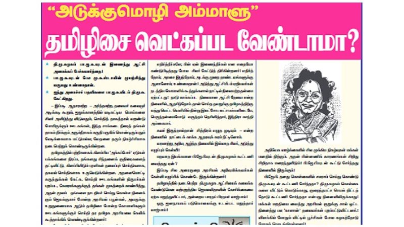 தமிழிசை கூறியதை நிரூபித்தால் தான் அரசியலை விட்டு விலகத் தயாராக இருப்பதாகவும், நிரூபிக்கத் தவறினால் மோடியும், தமிழிசையும் அரசியலை விட்டு விலகுவார்களா..? என்றும் ஸ்டாலின் சவால் விடுத்தார். இந்நிலையில், நேற்று பாஜக தலைவர் தமிழிசை சவுந்தரராஜனை விமர்சித்து ’அடுக்குமொழி அம்மாளு தமிழிசை வெட்கப்படவேண்டாமா..?’ என்ற தலைப்பில் திமுக நாளேடு முரசொலியில் கட்டுரை வெளியாகியுள்ளது.