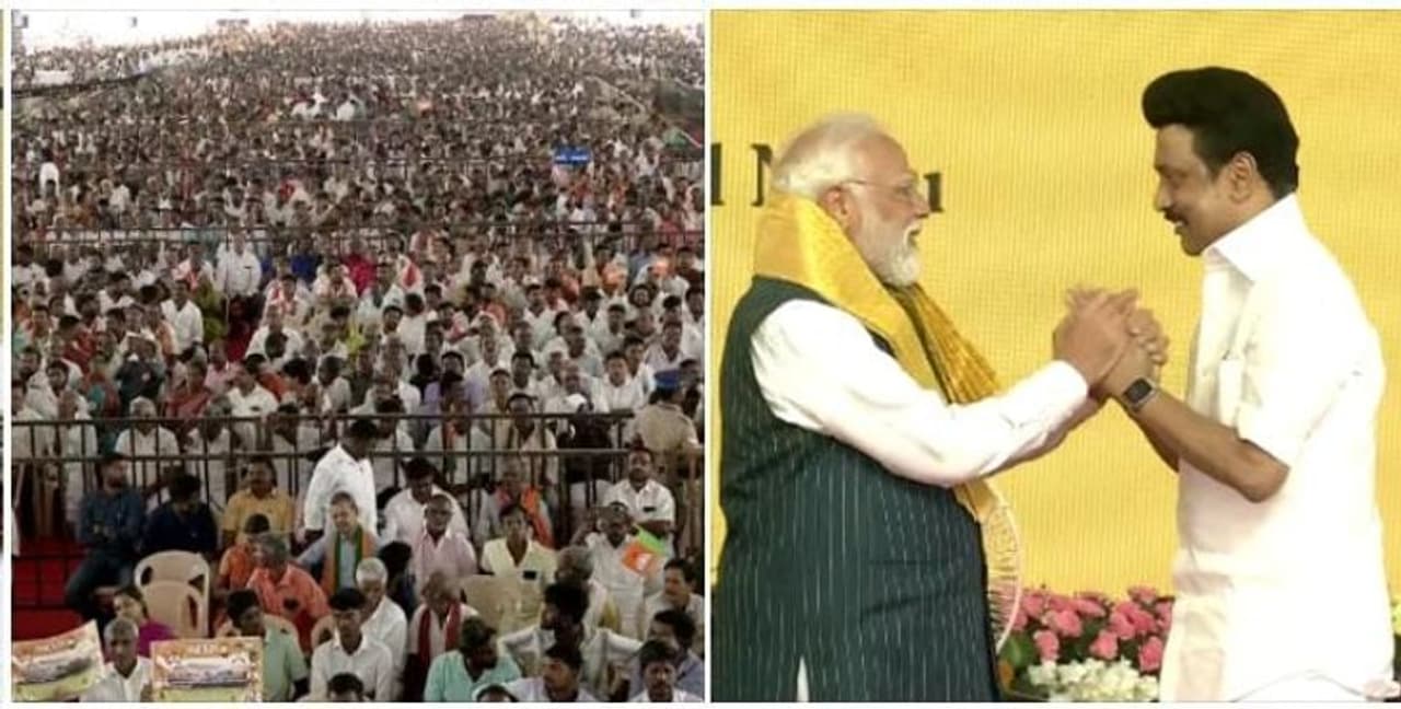 ஆனால், 'காங்கிரஸ் ஆட்சியை விட இரண்டரை மடங்கு அதிகமாக பா.ஜ.க. அரசு தமிழ்நாட்டுக்கு நிதி கொடுத்ததாக' திருச்சி கூட்டத்தில் பிரதமர் பேசி இருக்கிறார். ஒரே ஒரு திட்டத்துக்கு ஒதுக்கப்பட்டதை மட்டும் பார்ப்போம். மெட்ரோ ரயில் திட்டம் ஒன்றிய அரசின் சாதனையாகச் சொல்லப்படுகிறது. 2018 முதல் 2023 வரைக்கும் 6 ஆண்டு காலத்தில் தமிழ்நாட்டின்மெட்ரோ ரயில் திட்டத்துக்காக ஒன்றிய அரசு ஒதுக்கிய தொகை 3 ஆயிரத்து 273 கோடி ரூபாய்.