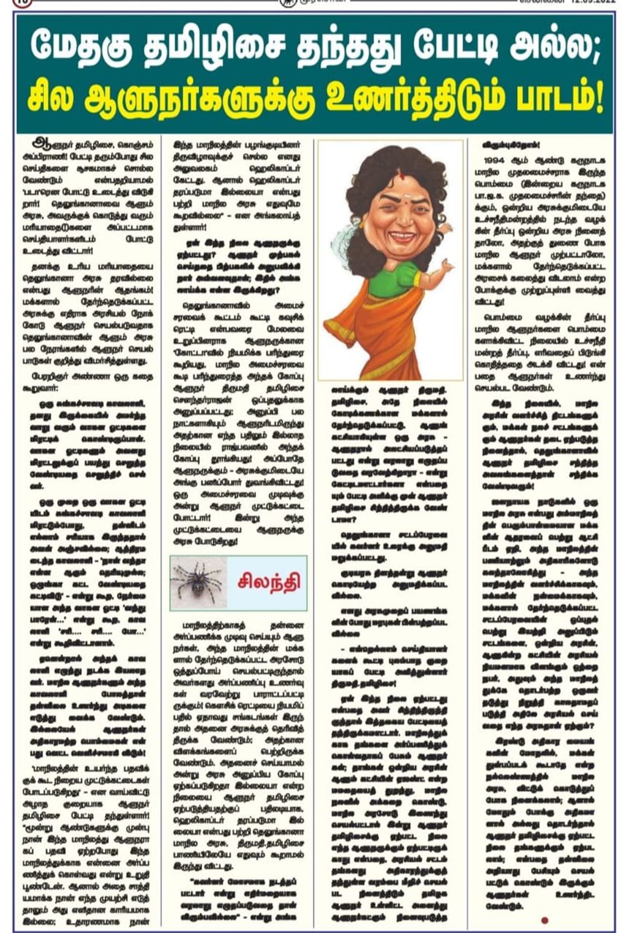 இரண்டு அதிகார மையங்களின் மோதலில், மக்கள் துன்பப்படக் கூடாதே என்ற நல்லெண்ணத்தில் மாநில அரசு, விட்டுக் கொடுத்துப் போக நினைக்கலாம்; ஆனால் மோதும் போக்கு அதிகமானால் அல்லது தொடர்ந்தால் ஆளுநர் தமிழிசைக்கு ஏற்பட்ட நிலை தங்களுக்கும் ஏற்படலாம்; என்பதை தன்னிலை அறியாது பேசியும் செயல்பட்டுக் கொண்டும் இருக்கும் ஆளுர்கள் உணர்ந்திடவேண்டும் என முரசோலியில் சிலந்தி எழுதிய கட்டுரையில் தெரிவிக்கப்பட்டுள்ளது.