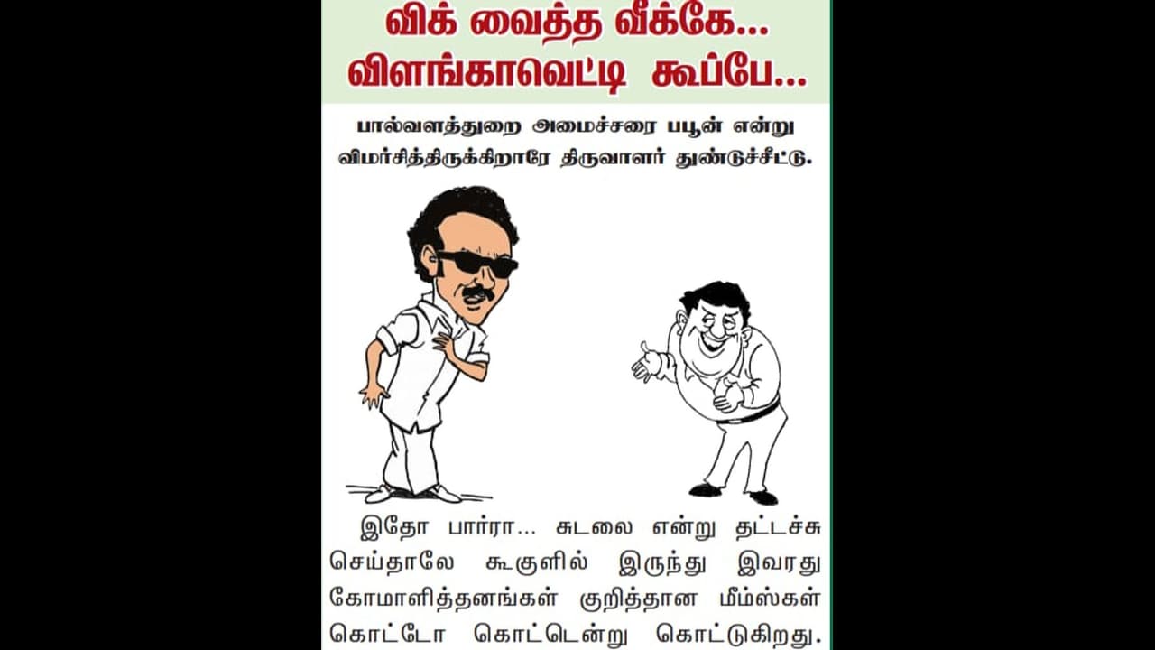 அதனால விக்கு வைத்த வீக்கே விளாங்காவெட்டி கூப்பே, நீதான் பபூன். உனக்கு போட்டியாக புறப்பட்டிருக்கும் உன் மகன் உதவாத நிதி இன்னொரு கோமாளி என்றால் அது மிகையல்ல. எனவே ஊர் சிரிக்கும் கேலிப் பொருளாக இருந்து கொண்டு, பிறரை கேலி செய்யலாமா.? என குத்தீட்டி பகுதியில் ஸ்டாலினை குத்திக் கிழித்துள்ளனர்.