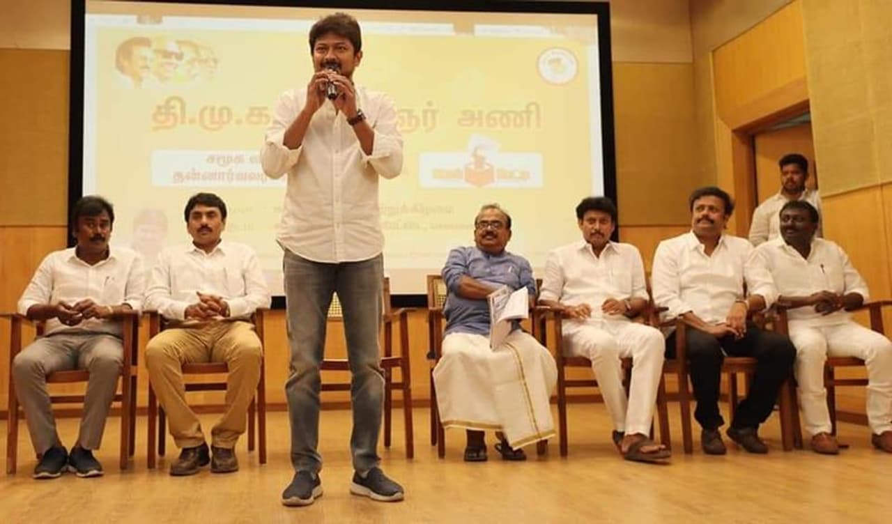 பின்னர் அவருக்கு இறுதியாக சால்வை போர்த்தும்போது... அங்கிருந்தவர்கள் பட்டு சால்வையை உதயநிதி கையில கொடுக்க . அதை வேண்டாம் என்று சொல்லிவிட்டு தன் வண்டியில இருக்கும் திமுக கட்சி கரை வேட்டியை எடுத்துவர சொல்லி அதை நாஞ்சில் சம்பத்திற்கு போர்த்தினார் உதய். சால்வையை போட்டுவிட்டு... இது தி.மு.கழக கரை வேட்டிண்ணே... இதை கட்டிக்கிறதும் கட்டிக்காததும் உங்கள் இஷ்டம் என்று அதே அழுத்தத்துடன் சொல்லி அரங்கை அதிர வைத்தார் உதய்யின் செயலைக் கண்ட நாஞ்சிலும் மேடையில் நெக்குருகி போனார். அப்போது அங்கிருந்தவர்கள் உண்மையிலேயே இது கலைஞரின் வாரிசு அரசியல்தாப்பா... கலைஞரையே மிஞ்சிட்டாப்ள உதய் என்று வியந்தனர்.