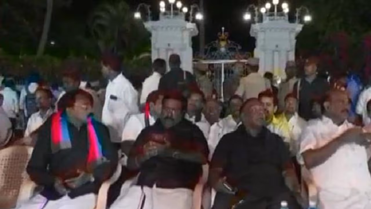 பின்னர் போலீசார் அவர்களை கவர்னர் மாளிகை வாசல் வரை அனுமதித்தனர். அங்கு முதலமைச்சர் மற்றும் அமைச்சர்கள், எம்.எல்.ஏ.க்கள் தரையில் அமர்ந்து தர்ணா போராட்டத்தில் ஈடுபட்டனர். இதனால் கவர்னர் மாளிகை அருகே பரபரப்பான சூழ்நிலையும், பதட்டமும் ஏற்பட்டது.