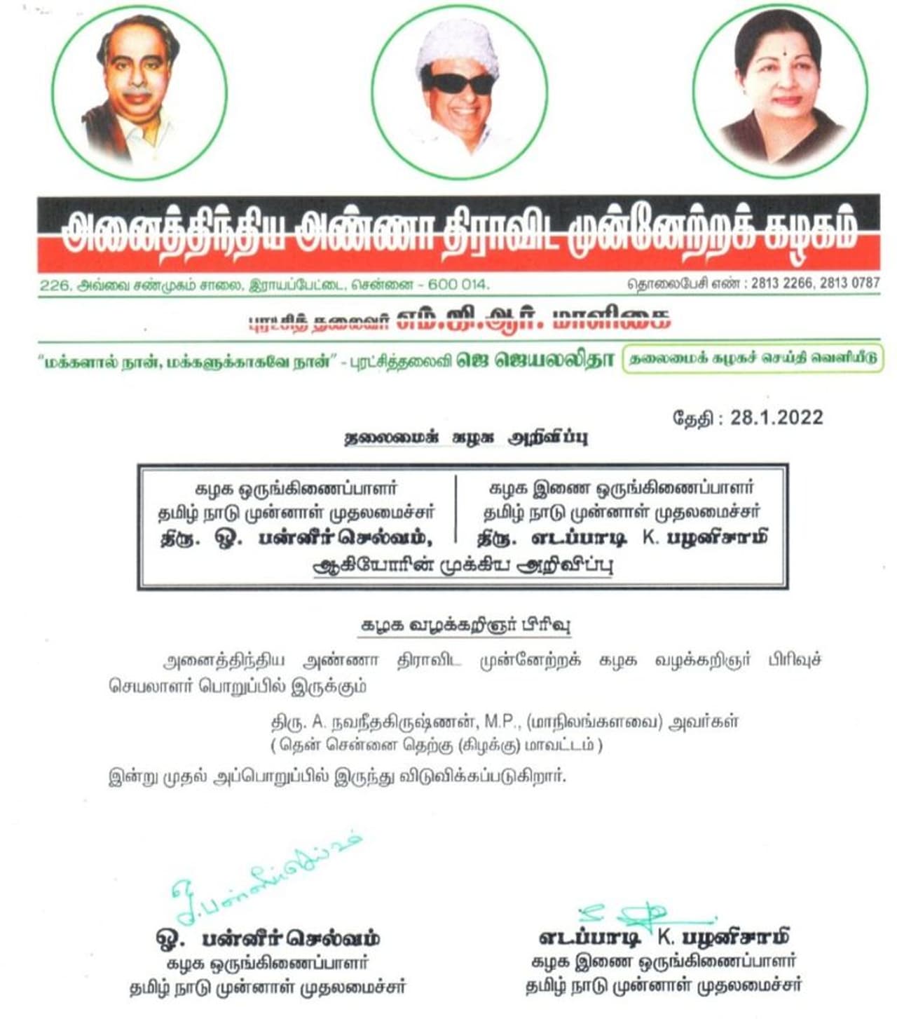 அதிமுக மாநிலங்களவை உறுப்பினர் எம்பி நவநீதகிருஷ்ணன் இதை பண்ண, அவரது கட்சி பொறுப்பை காலி செய்து அதிர்ச்சி கொடுத்திருக்கிறது அதிமுக.