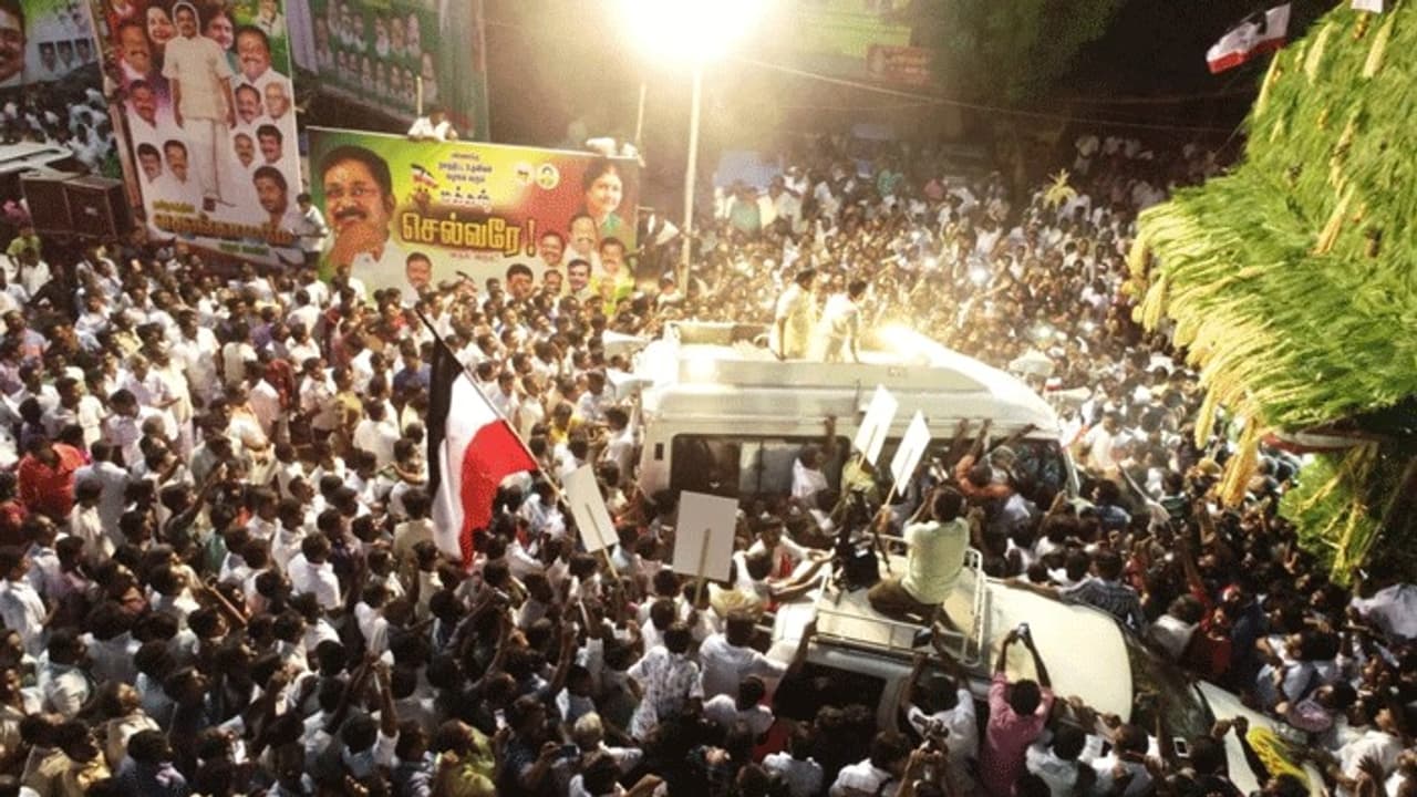 மன்னார்குடியில் நடைபெற்ற டி.டி.வி தினகரனின் அ.ம.மு.க கட்சியின் பொதுக்கூட்டத்திற்கு பெண்கள் கூட்டம் அதிகமாக இருக்க வேண்டும் என்பதற்காக அவரது ஆதரவாளர்கள் புதுவித டெக்னிக்கை யூஸ் செய்துள்ளனர்.