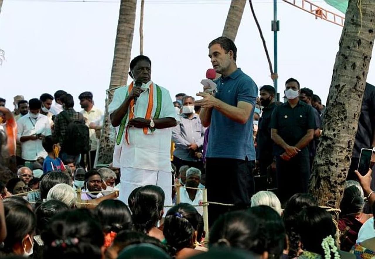 மக்களால் தேர்ந்தெடுக்கப்பட்ட புதுச்சேரி அரசை கடந்த 5 ஆண்டுகளாக செயல்பட விடவில்லை என முன்னாள் காங்கிரஸ் தலைவரும் எம்.பி.யுமான ராகுல்காந்தி குற்றம்சாட்டியுள்ளார்.