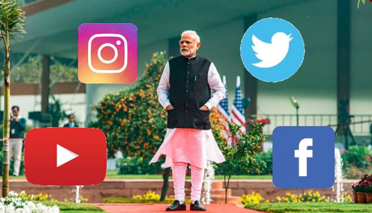 பிரதமர் மோடி சமூக ஊடகங்களாக ட்விட்டர், பேஸ்புக், இன்ஸ்டாகிராம் போன்றவற்றில் பலகோடி பேர் பின்தொடர செயல்படுகிறார். அன்றாடம் நடக்கும் நிகழ்வுகள், முக்கிய நபர்களின் சந்திப்புகள், வெளிநாட்டு பயணங்கள் போன்றவற்றை உடனுக்குடன் தனது கணக்கில் படங்களுடன் பதிவிட்டு வருகிறார். அவரை ட்விட்டரில் 5.33 கோடி பேரும், முகநூலில் 4.4 கோடி பேரும், இன்ஸ்டாகிராமில் 3.52 கோடி பேரும் பின் தொடா்ந்து வருகின்றனா்.