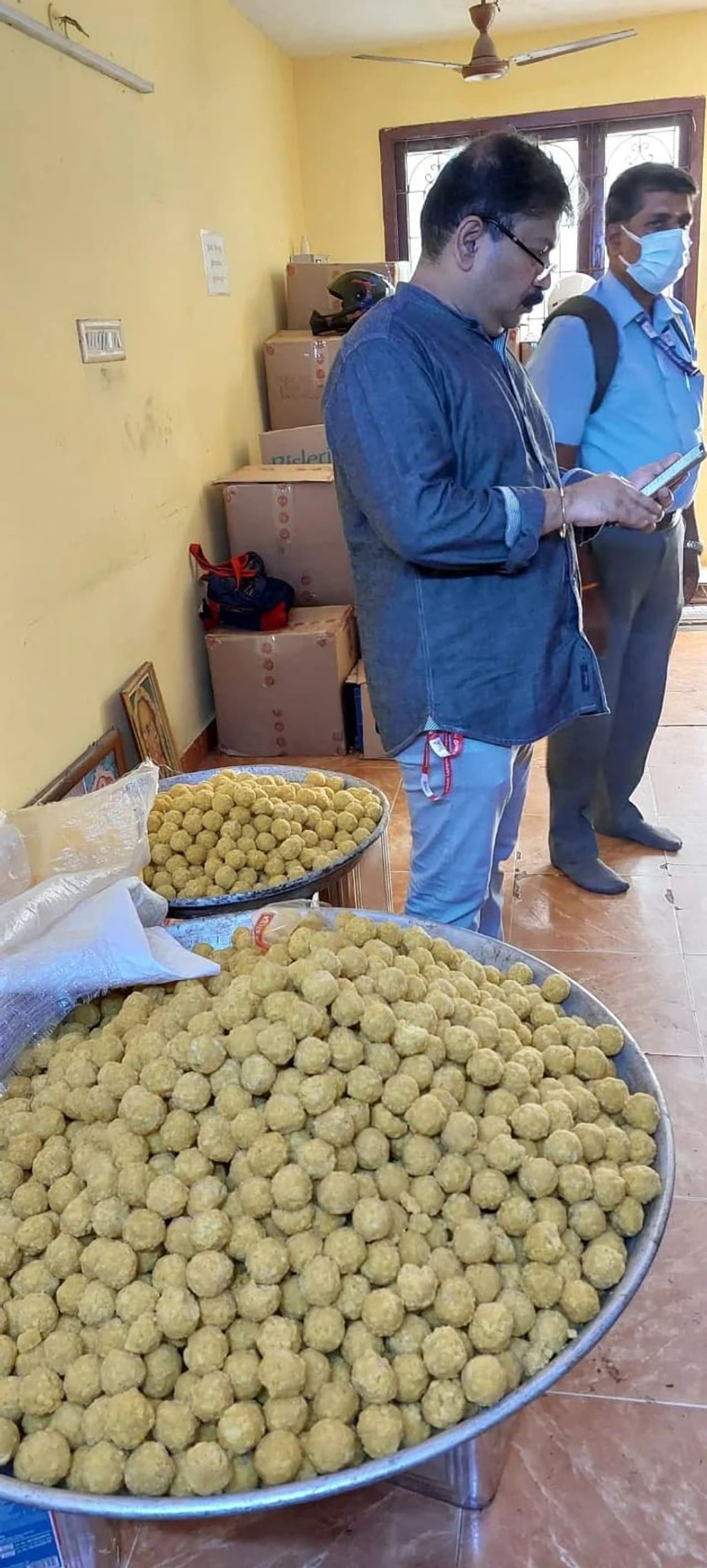 அந்த பிரசாதங்கள் தனிநபர் மூலம் விற்பனை செய்யப்பட்டு வந்த நிலையில் அவை பாலித்தீன் கவரில் அடைத்து விற்கப்பட்டு வந்தது. லட்டு, அதிரசம், முறுக்கு, தட்டை போன்ற உணவு பாக்கெட்டுகளில் தயாரிக்கப்பட்ட தேதி காலாவதியாகி இருந்தது. மேலும் இந்த பிரசாதங்கள் எங்கு தயாரிக்கப்படுகிறது என விசாரித்த அதிகாரிகளிடம், வடபழனி சாஸ்திரி நகரில் சீனிவாசன் என்பவருக்கு சொந்தமான இடத்தில் இந்த உணவுப் பொருட்கள் தயாரிக்கப்படுவதாக கூறினர். பின்னர் அந்த இடத்திற்கே நேரில் சென்று ஆய்வு செய்தபோது அந்த இடம் சுகாதாரமற்ற முறையில் இருந்ததை கண்டு அதிகாரிகள் அதிர்ச்சி அடைந்தனர். மேலும் உணவு தயாரிப்பதற்கான உரிமம் பெறாமல் உணவுக் கூடம் நடத்தி வந்ததும் விசாரணையில் தெரிந்தது.