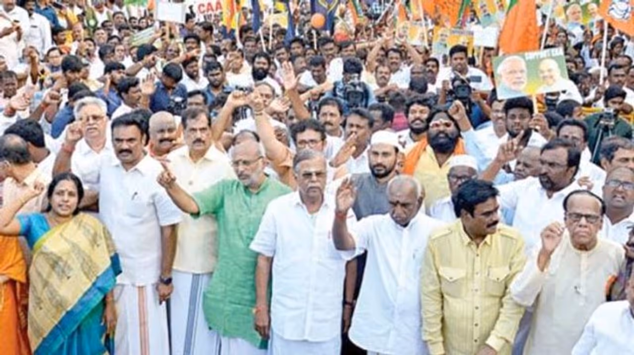 சென்னையில் நடைபெற்ற சிஏஏ எதிர்ப்புப் பேரணியில் கலந்துகொள்ள அதிமுக உள்ளிட்ட கூட்டணிக் கட்சித் தலைவர்களுக்கு பாஜக அழைப்பு விடுத்தது. ஆனால் அதிமுக, பாமக ஆகிய முக்கியக் கூட்டணிக் கட்சிகள் பேரணியில் கலந்துகொள்ளவில்லை.