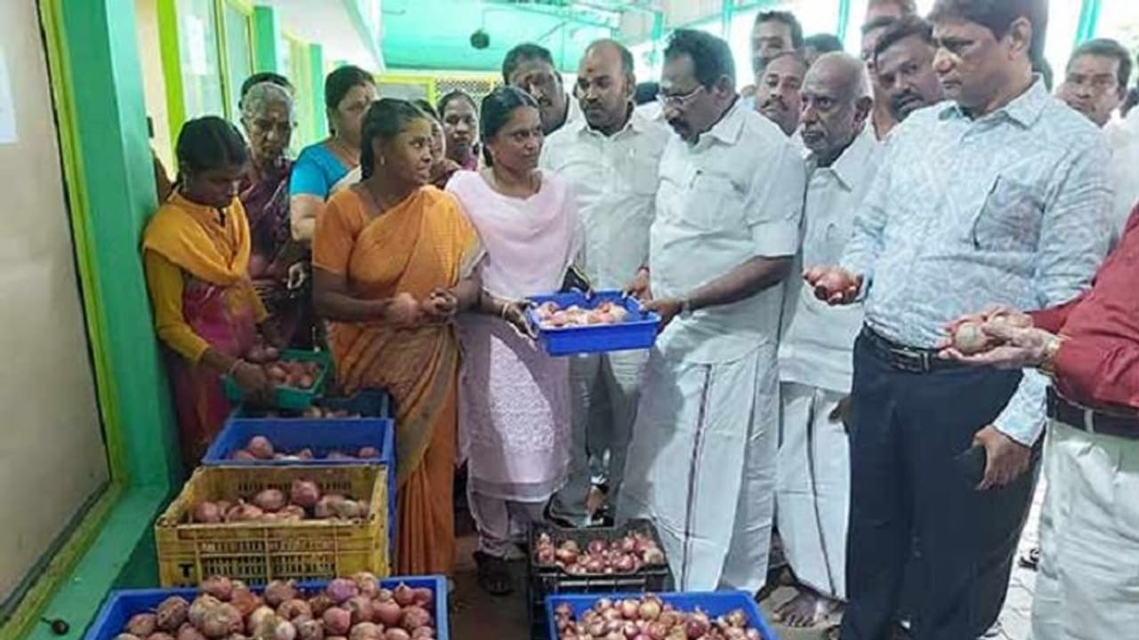 கூட்டுறவு துறை அமைச்சர் செல்லூர் ராஜூ தேனாம்பேட்டை காமதேனு அங்காடிக்கு சென்று வெங்காய விற்பனையை தொடங்கி வைத்தார். பின்னர் செய்தியாளர்களிடம் பேசிய அவர், முதலமைச்சர் எடப்பாடி பழனிசாமி வெங்காய விலையை கட்டுப்படுத்தும் வகையில் கூட்டுறவு கடைகளில் வெங்காயத்தை குறைந்த விலைக்கு விற்க உத்தரவிட்டதாக குறிப்பிட்டார்.
