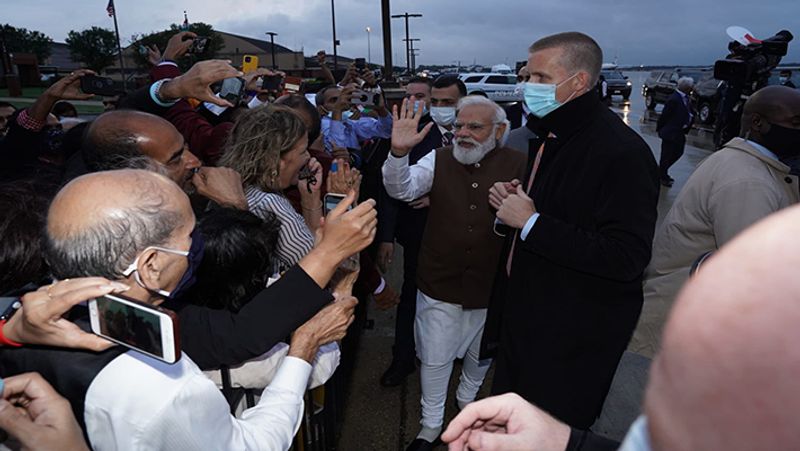 அவர் தன்னைச் சுற்றி பல கோப்புகளுடன் ஒரு காகிதத்தை கையில் வைத்து வாசிக்கிறார். பல முக்கிய நிகழ்வுகளுக்காக பிரதமர் மோடி அமெரிக்கா சென்றுள்ளார். தனது புகைப்படத்தை ட்விட்டரில்பகிர்ந்துகொண்டுள்ள அவர், "நீண்ட விமானப்பயணம் என்பது காகிதங்கள் மற்றும் சில கோப்பு மேற்பார்வையிடுவதற்கான வாய்ப்புகள்." எனப் பதிவிட்டுள்ளார்.
