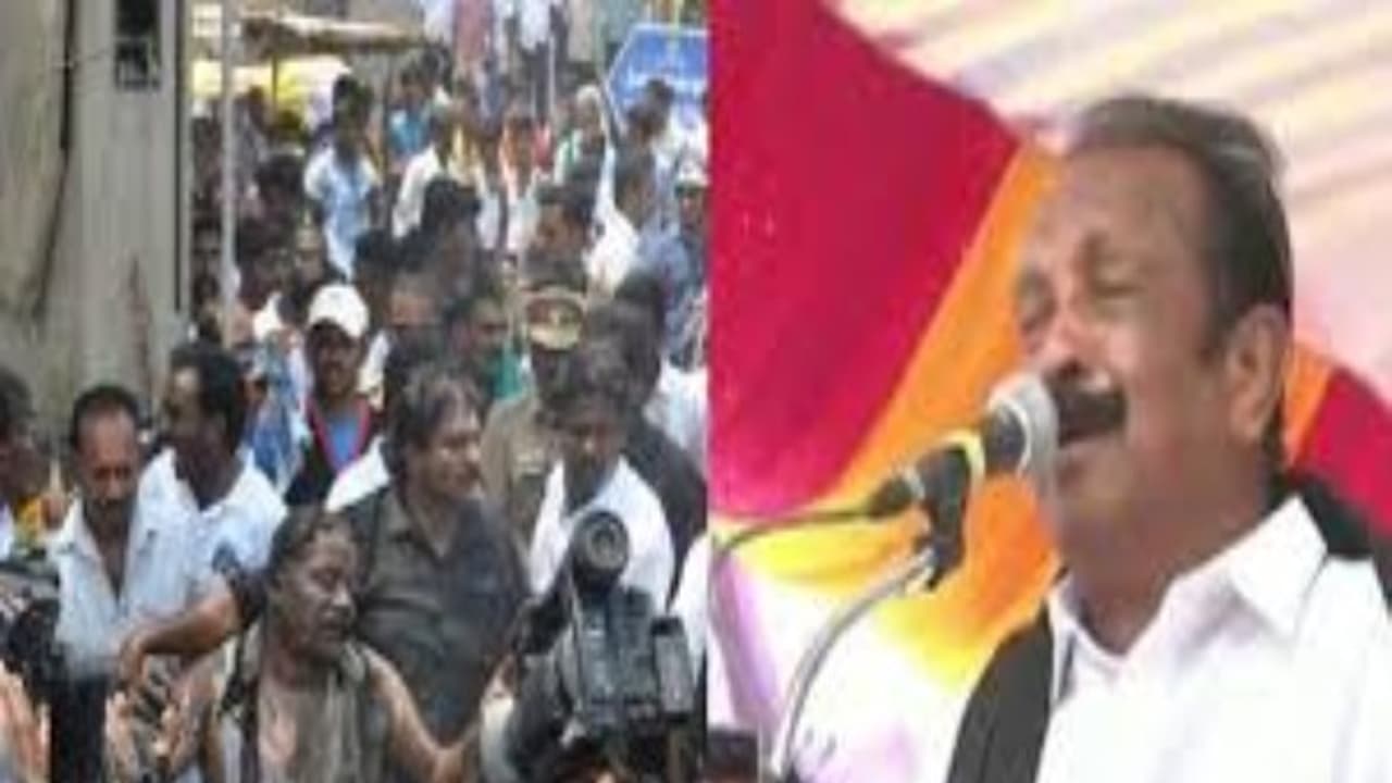 நடைபயணத்தை வாழ்த்தி பல்வேறு கட்சி மற்றும் அமைப்புகளின் தலைவர்கள், பிரமுகர்கள் பேசினர். அப்போது கூட்டத்தில் திடீரென ஒருவர் தலையில் பெட்ரோலை ஊற்றி தீக்குளித்தார். தலை, உடல் என தீப் பற்றிய நிலையில், அவர் இங்குமங்கும் ஓடினார். இதையடுத்து அவர் மீது மண்ணை போட்டும், தண்ணீர் தெளித்தும் தீயை அணைத்தனர். அப்போது அந்த இளைஞர் தமிழகத்தில் நியூட்ரினோ திட்டம் வரக்கூடாது என முழுக்கமிட்டார். உடனடியாக அவரை மீட்ட தொண்டர்கள் தனியார் மருத்துவனையில் சிகிச்சைக்காக சேர்த்தனர்