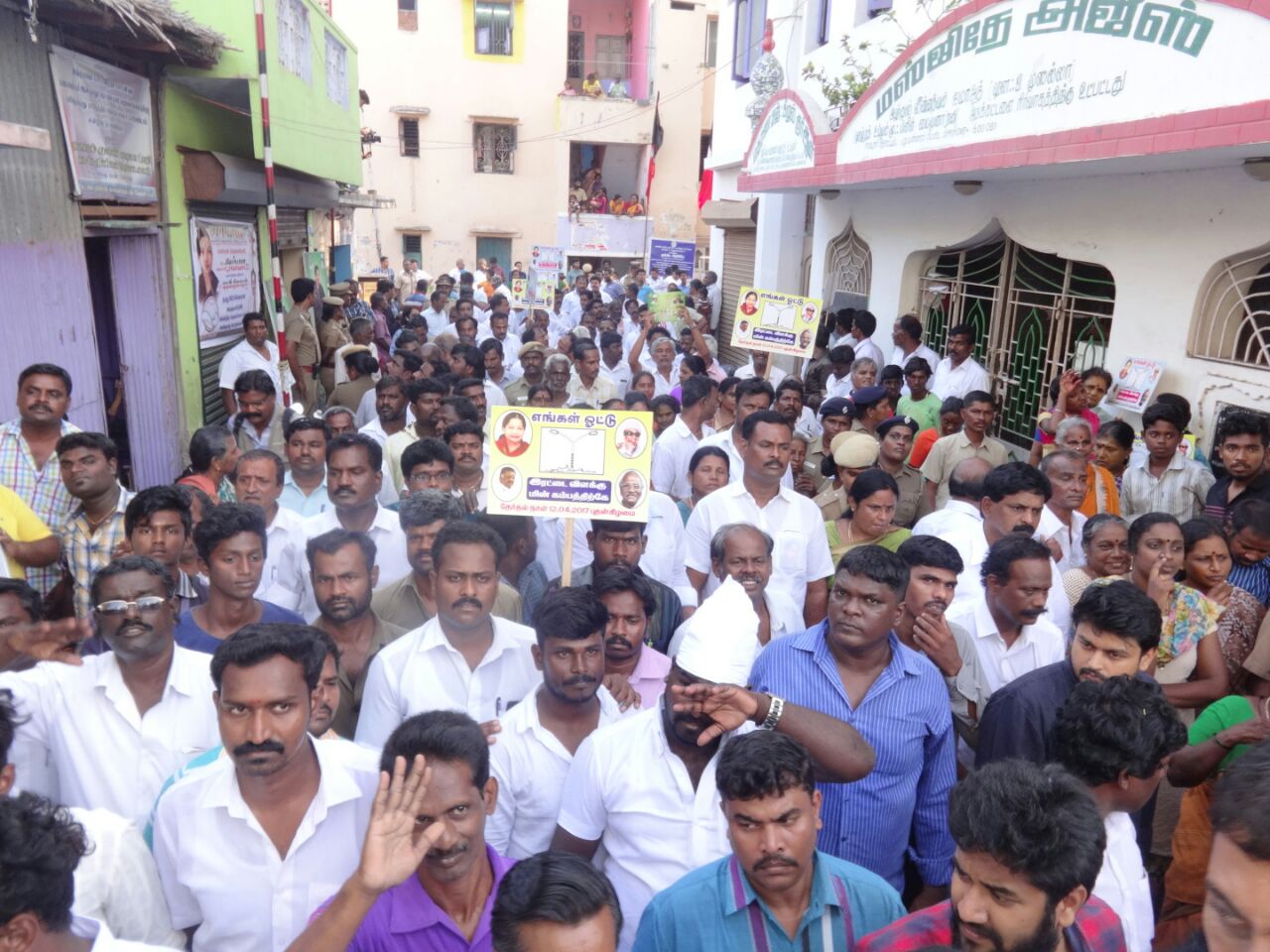 மறுபுறம் டிடிவிக்கு பிரச்சாரம் செய்ய வந்த தம்பிதுரை ஏண்டா வந்தோம் என்று வழியெங்கும் ரெட்டை இலையை முடக்கிவிட்டு வருகிறார் பார் , எவ்வளவு பணம் வாங்கினார் என்றெல்லாம் தொண்டர்கள் வசை மாறியுடன் இறுகிய முகத்துடன் போனார் தம்பிதுரை.