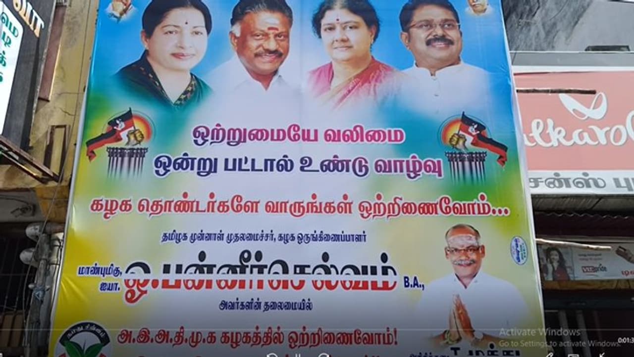 இந்நிலையில் அதிமுக ஒருங்கிணைப்பாளர் ஓ.பன்னீர்செல்வம் நேற்று முன்தினம் சசிகலா மற்றும் டிடிவி தினகரனுடன் சந்தித்து ஒன்றிணைந்து செயல்படுவோம் என தெரிவித்ததை தொடர்ந்து இன்று பெரியகுளம் தென்கரை பகுதியில் அதிமுக தொண்டர் முத்து என்பவர் ஓபிஎஸ் ஆதரவாளரான முத்து என்பவர் வைக்கப்பட்ட பேனர் வைரலாகி வருகிறது.