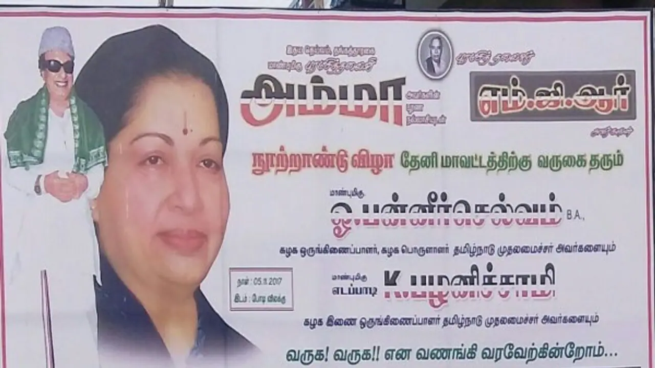 இந்நிலையில் இன்று தேனி மாவட்டத்தில் நடைபெறும் எம்.ஜி.ஆர். நூற்றாண்டு விழாவுக்காக துவக்கத்தில் வைக்கப்பட்டிருந்த பிளக்ஸ்களில் இந்த பிளவு வெளிப்படையாக பளீரிட்டது. ஆளும் அ.தி.மு.க. அணியை பொறுத்த வரையில் தேனி மாவட்டமென்பது பன்னீரின் கோட்டை.