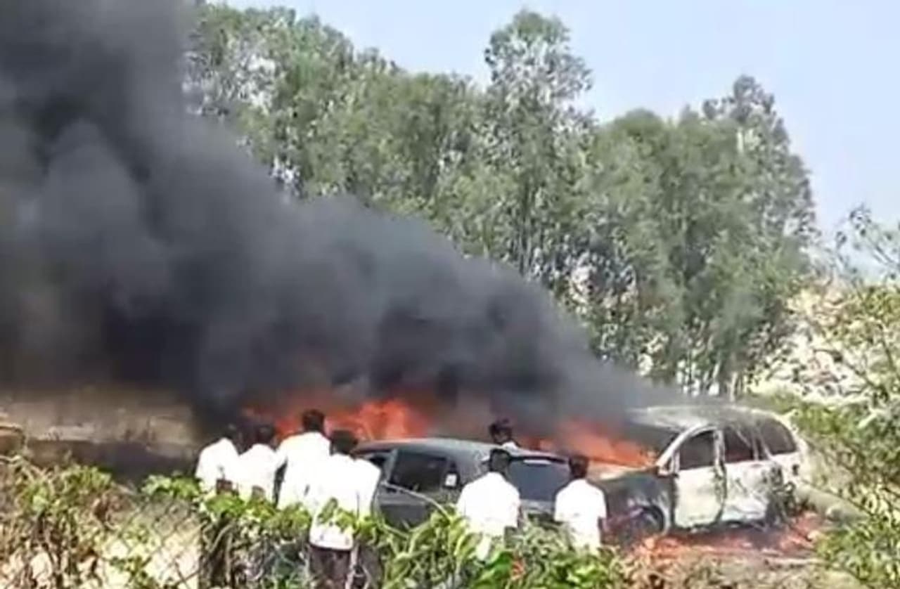 சாமி தரிசனத்திற்கு பின் அனைத்தும் சரியாகிவிடும என்று நம்பியிருந்த சசிகலாவிற்கு பேரியாக அமைந்தது மற்றுமொரு சம்பவம். சசிகலா கிருஷ்ணகிரியை கடந்து வந்துகொண்டு இருக்கும்போது, கட்சியின் சில தொண்டர்கள் பட்டாசு வெடிக்க முயற்சித்தனர். அப்போது, அருகே இருந்த இரண்டு கார்கள் தீ பற்றி எரிந்து முற்றிலும் நாசம் ஆனது . ஏற்கனவே தனது கார் விபத்துகுள்ளானதால் வாகனத்தை மாற்றிய சசிகலா இந்த சம்பவத்தால் மனம் நொந்து போனார். இதையடுத்து, சசிகலா மீண்டும் தான் வந்த காரை இரண்டாவது முறையாக மாற்றி பெரிய வேன் போன்ற வாகனத்தில் பயணத்தை தொடர்ந்தார்.