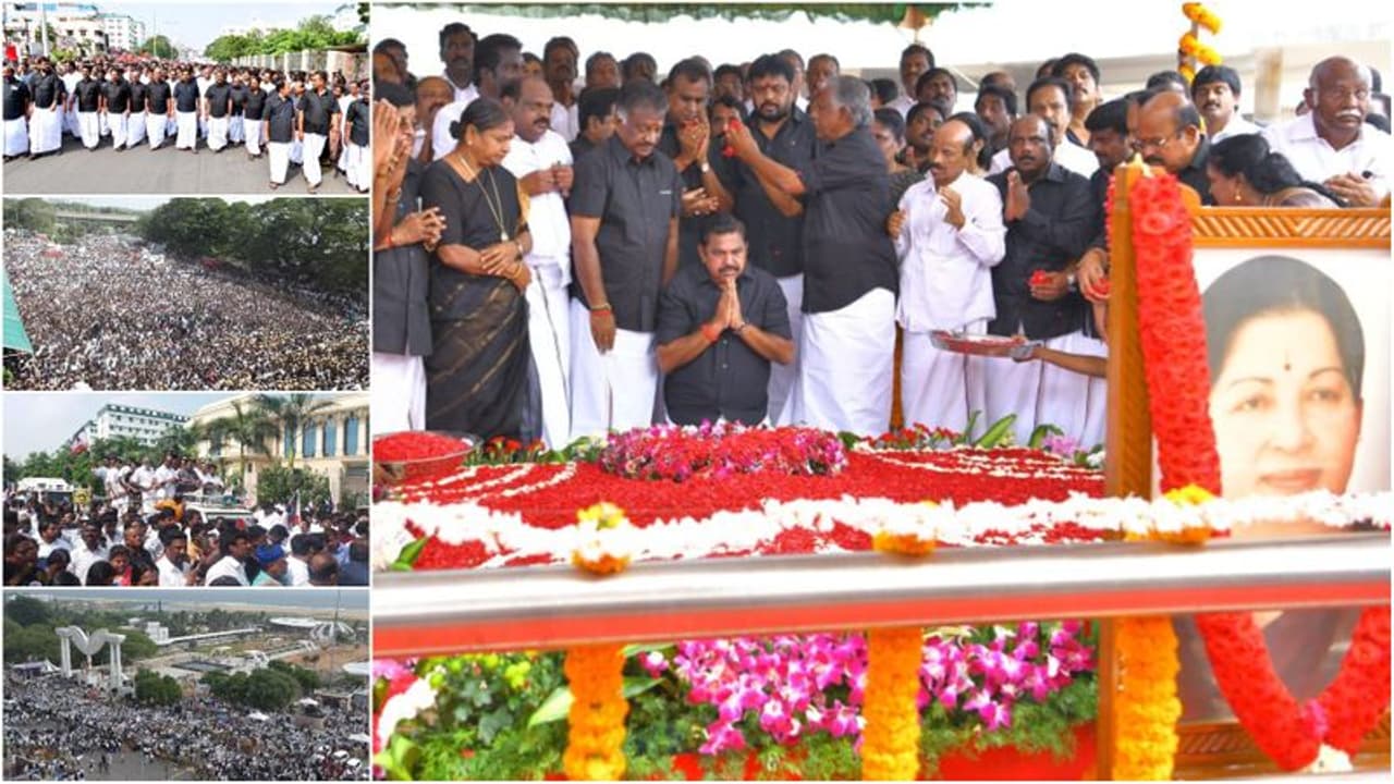 அ.தி.மு.க.வின் நிரந்தர பொதுச்செயலாளர்! என்று அக்கட்சியினராலேயே அழைக்கப்பட்ட ஜெயலலிதாவின் மூன்றாம் ஆண்டு நினைவு நாள் இன்று. இதையொட்டி சென்னையில் அ.தி.மு.க. சார்பாக அஞ்சலி ஊர்வலம் நடத்தப்பட்டது. இதில் முதல்வர் எடப்பாடியார், துணை முதல்வர் பன்னீர்செல்வம், உள்ளிட்ட அமைச்சர் பெருமக்களும், கழகத்தின் முக்கிய நிர்வாகிகளும், தொண்டர்களும் கலந்து கொண்டனர்.