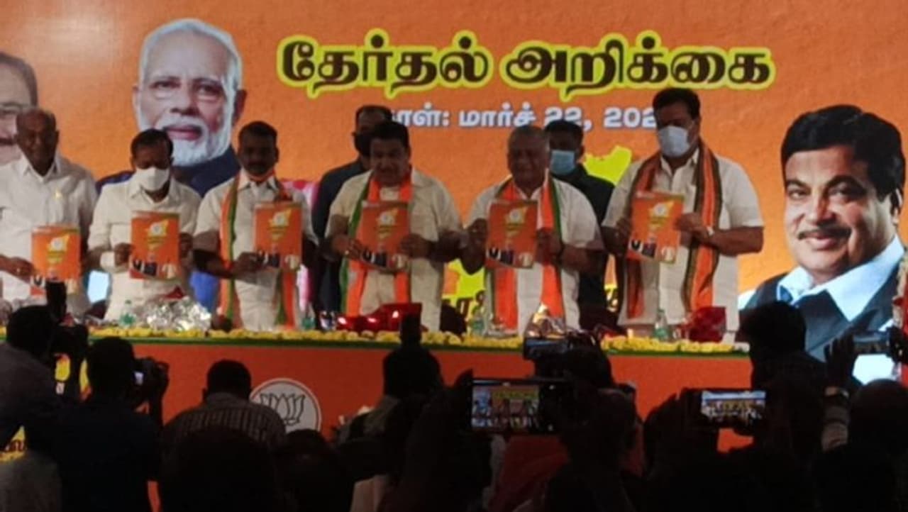 தமிழக சட்டப்பேரவை தேர்தல் ஏப்ரல் 6-ம் தேதி நடைபெறுகிறது. இந்நிலையில், அதிமுக, திமுக, அமமுக மற்றும் கூட்டணி கட்சிகள் தேர்தல் அறிக்கையை வெளியிட்ட நிலையில் தற்போது பாஜகவின் தேர்தல் அறிக்கையை மத்திய அமைச்சர் நிதின் கட்கரி வெளியிட்டுள்ளார். இதில் மாநில தலைவர் முருகன், எச்.ராஜா உள்ளிட்ட நிர்வாகிகள் கலந்து கொண்டனர்.