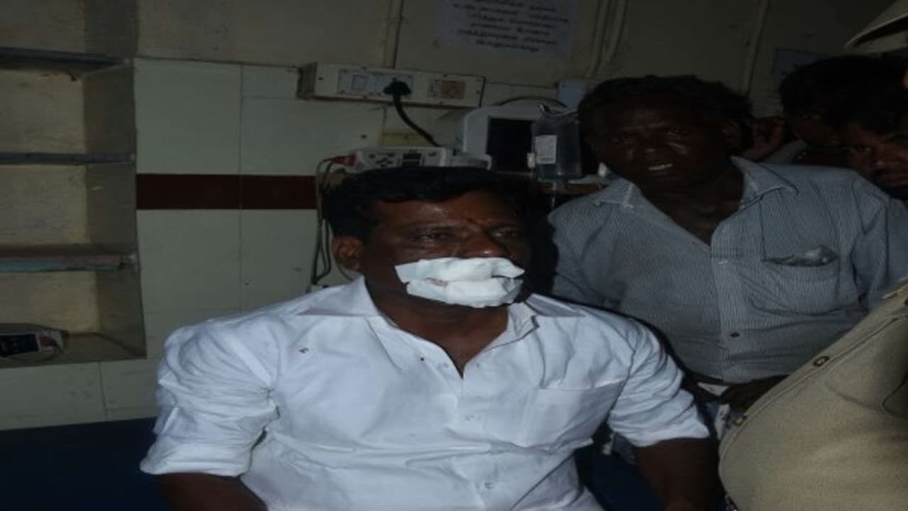 அதில் கார் கண்ணாடி உடைந்து ஏழுமலையின் இரு உதடுகளும் கிழிந்தன. இதைத் தொடர்ந்து ஏழுமலை திருவள்ளூர் அரசு மருத்துவமனையில் அனுமதிக்கப்பட்டுள்ளார். தாக்கிவிட்டு தப்பியோடிய நைனா கண்ணை போலீஸார் தேடி வருகின்றனர். நைனா கண்ணு, ஓ.பன்னீர்செல்வம் ஆதரவாளர் என்று கூறப்படுகிறது. எம்.எல்.ஏ மீதான தாக்குதல் தொடர்பாக போலீசார் தீவிர விசாரணை நடத்திவருகின்றனர்.
