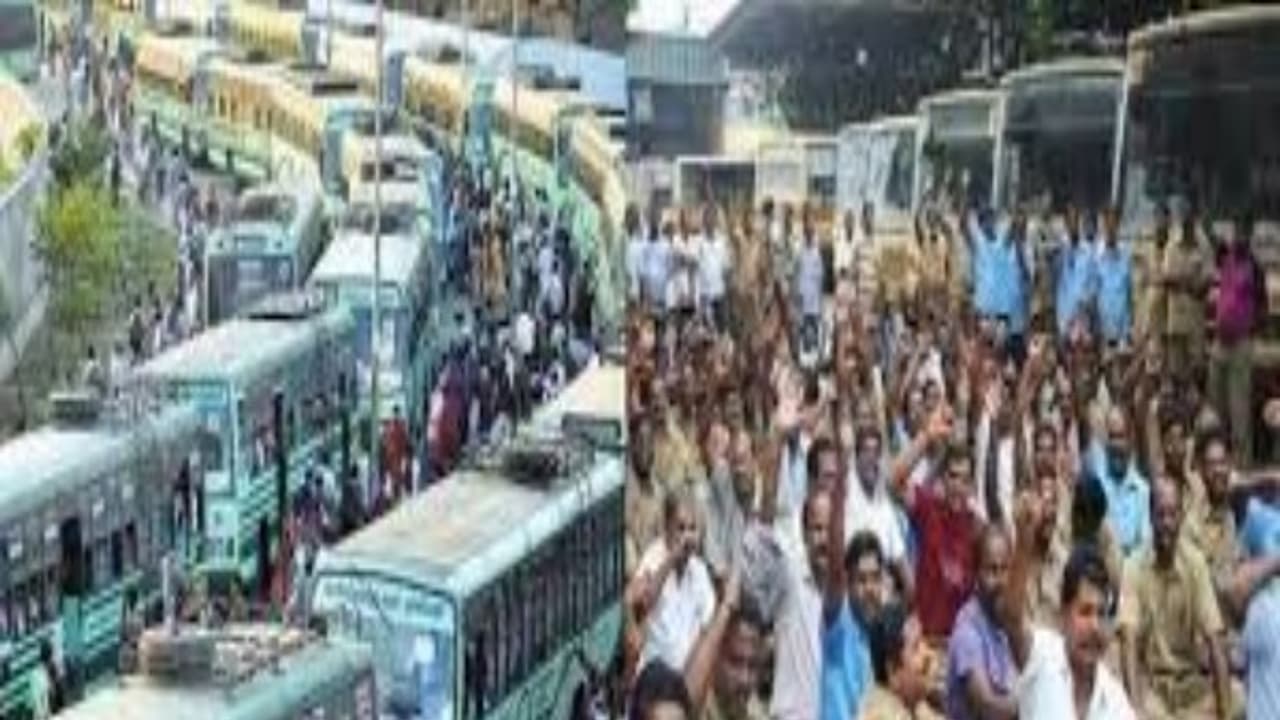 இதையடுத்து போக்குவரத்துத் தொழிலாளர்கள் பேருந்துகளை ஆங்காங்கே நிறுத்திவிட்டு போராட்டத்தில் ஈடுபட்டுள்ளனர். மேலும் பேருந்துகளை நிறுத்தி பயணிகளை இறக்கிவிட்டு விட்டு பணிமனைக்கு பேருந்துகளை காலியாக கொண்டு செல்கின்றனர்.