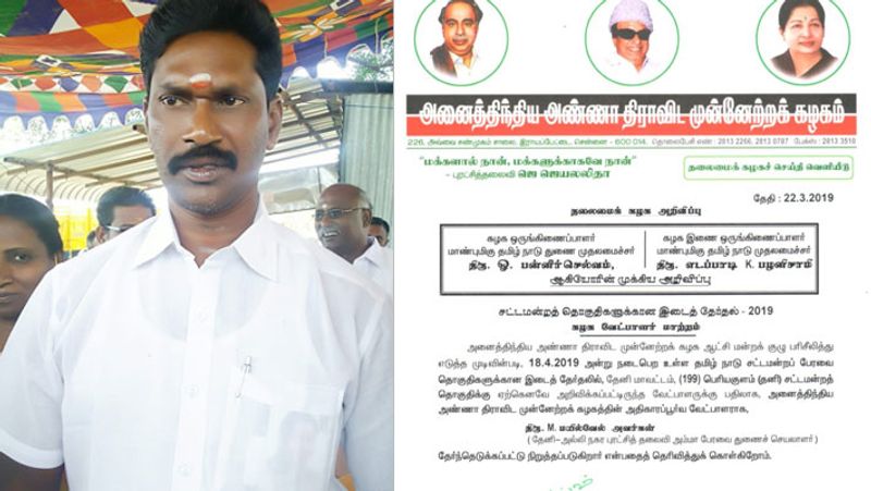 இந்நிலையில் அதிமுக ஒருங்கிணைப்பாளர் ஓ.பன்னீர்செல்வம் தலைமையில் வேட்பாளர் அறிமுக கூட்டத்தில் தேனி மக்களவை தொகுதி வேட்பாளர் ரவீந்திரன் மற்றும் ஆண்டிப்பட்டி சட்டமன்ற வேட்பாளர் லோகிராஜனை அறிமுகப்படுத்தப்பட்டனர். அப்போது பெரியகுளம் தொகுதியில் போட்டியிடும் முருகன் கலந்து கொள்ளவில்லை.