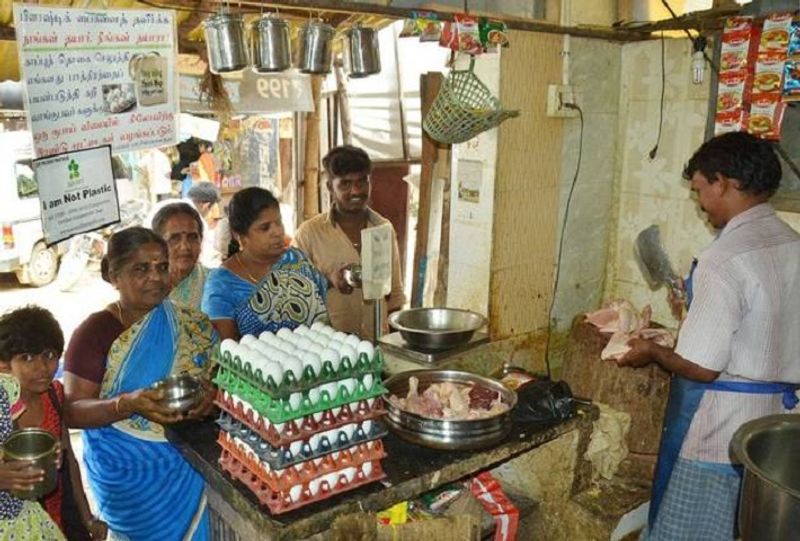 பிளாஸ்டிக் பைகளை பயன்படுத்தி வந்த ஹோட்டல்களில் தற்போது வாழை இலைகள் பயன்படுத்தப்பட்டு வருகின்றன. கறிக்கடைகளிலும் பாத்திரம கொண்டு வந்து கறி வாங்கினால் முட்டை இலவசம் என அறிவித்து விழிப்புணர்வை ஏற்படுத்தி வருகின்றனர்.