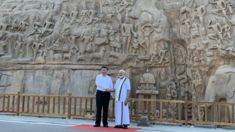 முன்னதாக பிரதமர் மோடி மற்றும் சீன அதிபர் ஜி ஜின்பிங் மாமல்லபுரம் சென்றனர். வேட்டி சட்டையுடன் வந்திறங்கிய பிரதமர் மோடி சீன அதிபரை வரவேற்றார். அதன் பின்னர் மாமல்லபுரம் சிற்பங்களை குறித்து சீன அதிபருக்கு பிரதமர் மோடி விளக்கினார்.