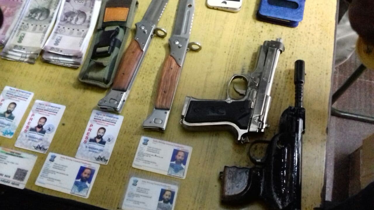 கைது செய்யப்பட்டுள்ள நாகராஜன் தென்கரை காவல் நிலையத்திற்கு கொண்டு செல்லப்பட்டு விசாரணை நடத்தப்பட்டு வருகிறது. அவரது வீட்டை சோதனையிட்டதில் பயங்கர ஆயுதங்கள், கள்ள ரூபாய் நோட்டுக்கள் என பல பொருட்கள் பறிமுதல் செய்யப்பட்டன..