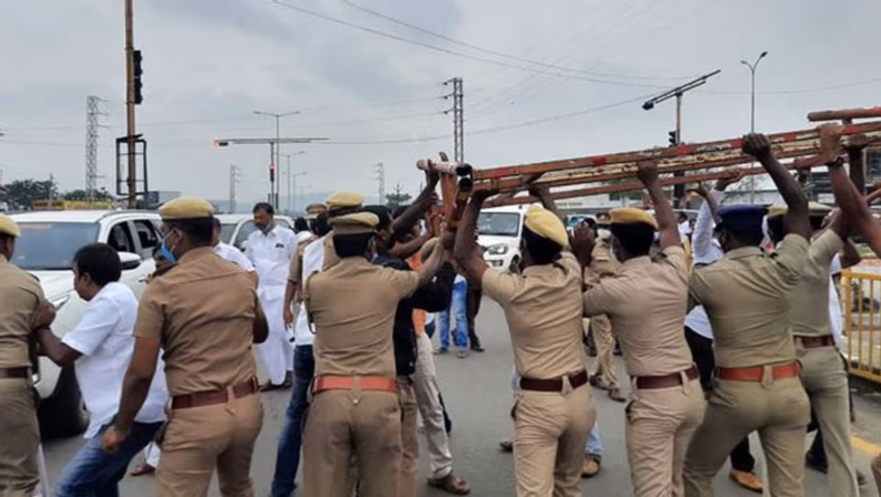 அப்போது, கனிமொழி காலை ஈச்சனாரி அருகே போலீசார் தடுத்து நிறுத்தினர். இதனால், அங்கு போலீசாருக்கும், திமுகவினருக்கும் இடையே தள்ளுமுள்ளு ஏற்பட்டது. இதனையடுத்து கனிமொழி உள்ளிட்டோர் சாலையில் அமர்ந்து போராட்டம் நடத்தினர். இதனால், அப்பகுதியில் பரபரப்பு ஏற்பட்டது. பின்னர் போலீசாரின் தடையை மீறி, பொள்ளாச்சி சென்று போராட்டத்தில் கனிமொழி உள்ளிட்ட திமுகவினர் ஈடுபட்டுள்ளனர்.