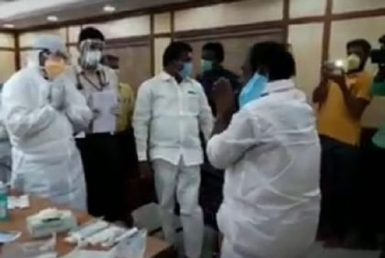 இந்நிகழ்வில் அரியாங்குப்பம் தொகுதி காங்கிரஸ் எம்எல்ஏ ஜெயமூர்த்தியும் கொரோனா பரிசோதனை மேற்கொள்ள வந்தார். அப்போது பரிசோதனை செய்து கொண்டிருந்த மருத்துவர்களின் காலில் விழுந்து அவர் சேவைக்கு நன்றி தெரிவித்தார். இதுகுறித்து கூறிய அவர், தனது தொகுதியில் இருக்கும் 5 பகுதிகள் தனிமைப்படுத்த பகுதியாக நீடிப்பதாகவும் அங்கு மருத்துவர்களின் செயல்பாடு சிறப்பாக இருப்பதாகவும் கூறினார். அவர்களுக்கும் தொற்று ஏற்படக் கூடிய நிலை இருந்தும் தங்கள் உயிரை பொருட்படுத்தாமல் பணியாற்றும் மருத்துவர்களின் தன்னலமற்ற சேவைக்கு தலை வணங்கும் விதமாக காலில் விழுந்து நன்றி தெரிவித்ததாக ஜெயமூர்த்தி குறிப்பிட்டார். சட்டமன்ற உறுப்பினர் ஒருவர் மருத்துவர்களின் காலி விழுந்து வணங்கிய செயல் அங்கிருந்தவர்களுக்கு ஆச்சரியத்தை கொடுத்தது.