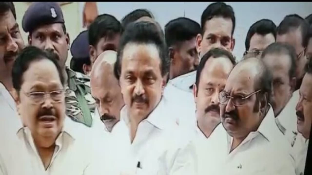 Ponmudi and J.anbazhagan fight in front of stalin